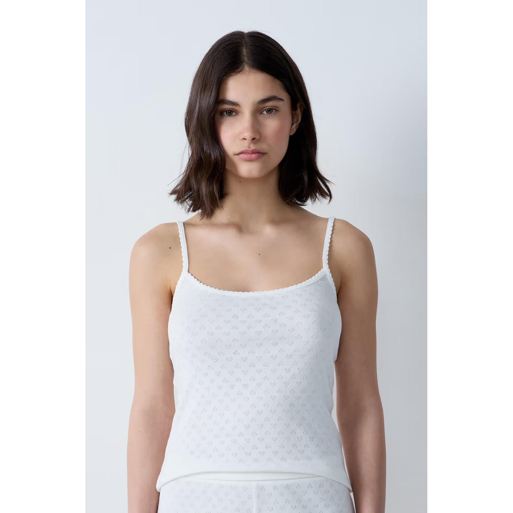 Das perfekte Baumwoll-Trägertop für täglichen Komfort. Mit seinem Pointelle-Strick, dem Carré Ausschnitt und den dünnen Trägern wird es zu einem unverzichtbaren Teil der Nachtwäsche-Garderobe.