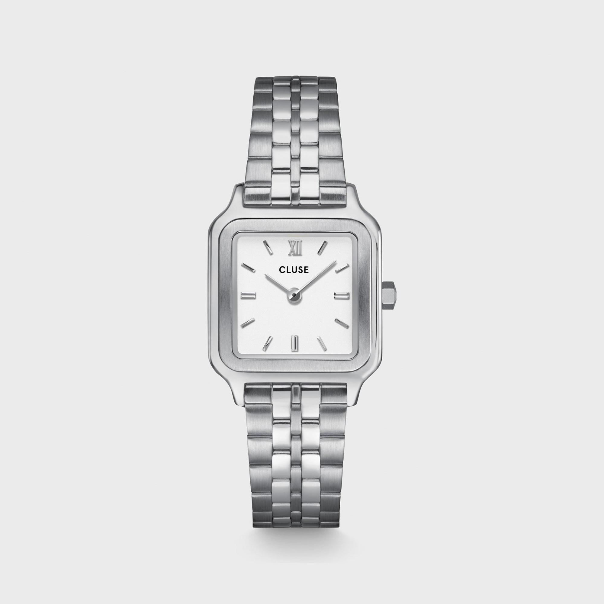 Eine edle Ergänzung für jede Uhrensammlung: die Gracieuse Petite Uhr für Damen. Mit einem quadratischen, silberfarbenen 24-mm-Gehäuse, weissem Zifferblatt und einem silberfarbenen 5-Glieder-Armband aus Edelstahl mit 14 mm. Dieser silberfarbene Hingucker verleiht all Ihren Looks einen glamourösen Vintage-Touch. Passen Sie das Aussehen Ihrer Uhr ganz einfach mit jedem 14-mm-Armband an. Sie können die Grösse des Armbands ganz einfach selbst einstellen.