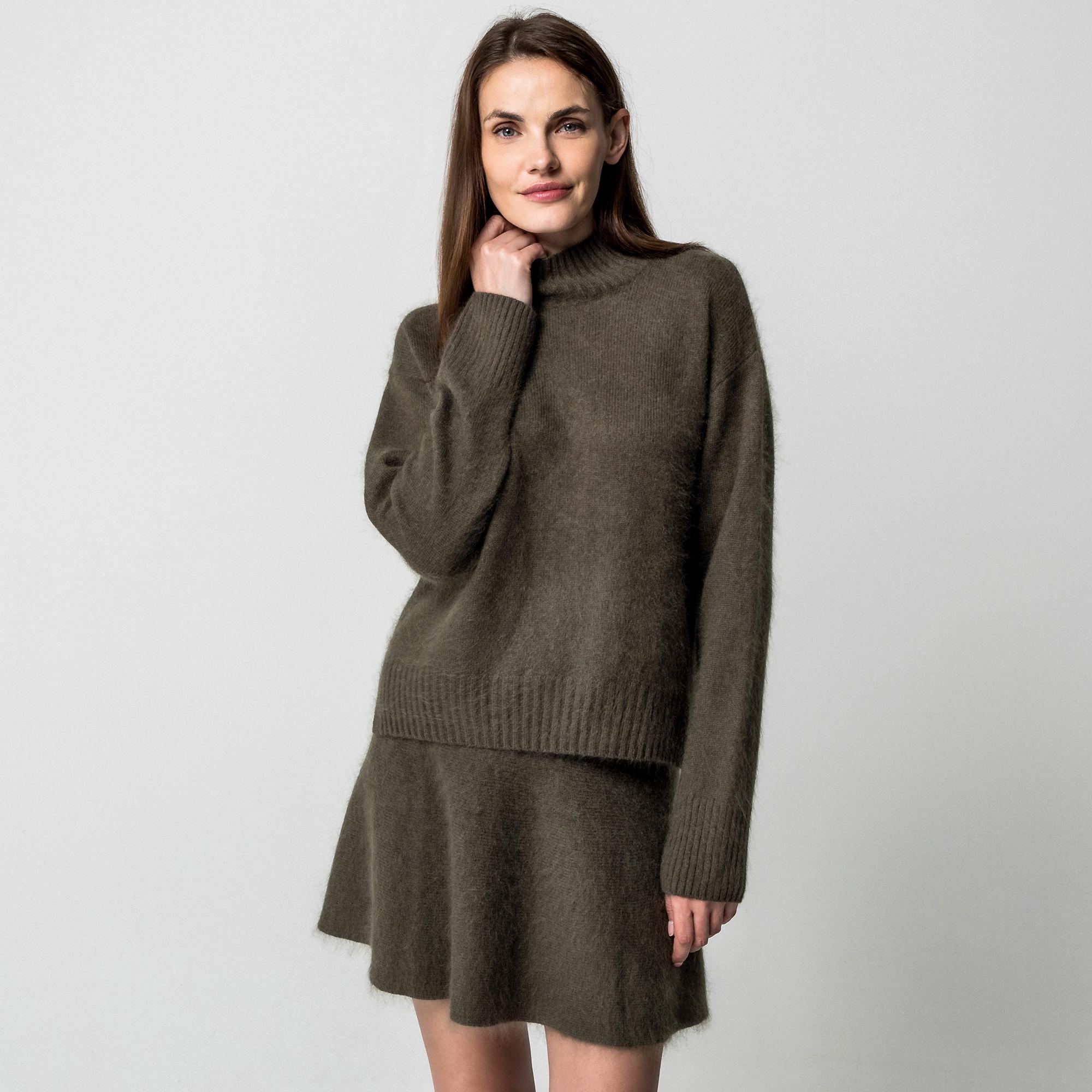 Dieser Pullover ist mit Mock-Kragen und langen Ärmeln aus flauschigem Strick hergestellt – aus einem angenehm weichen Kaschmir-Mix. Kaschmir ist ein edles Naturprodukt, speichert Wärme, hat wasser- und schmutzabweisende Eigenschaften und nimmt kaum Gerüche an.