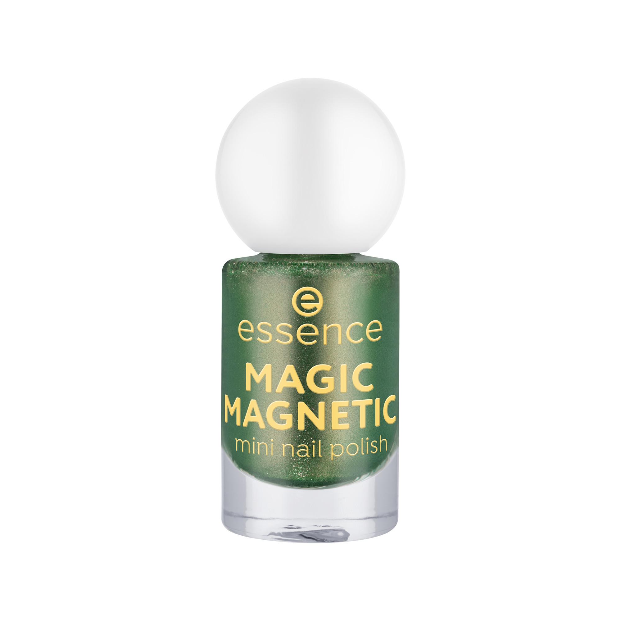 Jede Menge Magie in einer kleinen Flasche – der essence MAGIC MAGNETIC mini Nagellack bringt deine Nägel zum schimmern. Die verspielte Verpackung mit rundem Verschluss enthält einen Nagellack mit magnetischen Partikeln, der es dir ermöglicht, faszinierende, einzigartige Designs zu kreieren. Du kannst ihn allein oder mit einem Magneten verwenden, um einzigartige Muster zu schaffen. Nutze entweder einen speziellen Nagellack-Magnet, falls du bereits einen solchen hast, oder erziele einen ähnlichen Effekt mit einem Haushaltsmagneten.Anleitung zur Verwendung des Nagellacks mit Magnet: Trage eine grosszügige Schicht des magnetischen Nagellacks auf einen Fingernagel auf. Achte darauf, jeweils einen Nagel nach dem anderen zu bearbeiten, damit der Lack nicht trocknet, bevor du den Magneten verwendest. Halte den Magneten sofort über den noch feuchten Lack. Positioniere ihn so nah wie möglich, ohne den Nagel zu berühren. Halte den Magneten 10–15 Sekunden ruhig über den Nagel, damit die magnetischen Partikel das gewünschte Muster bilden können.TIPP: Mit Winkeln experimentieren: Probiere verschiedene Winkel und Positionen des Magneten aus, um einzigartige Muster zu erzielen. Abgesehen von der speziellen Magnet-Funktion erzielt der Nagellack auch ohne Modifikation ein hervorragendes Ergebnis.