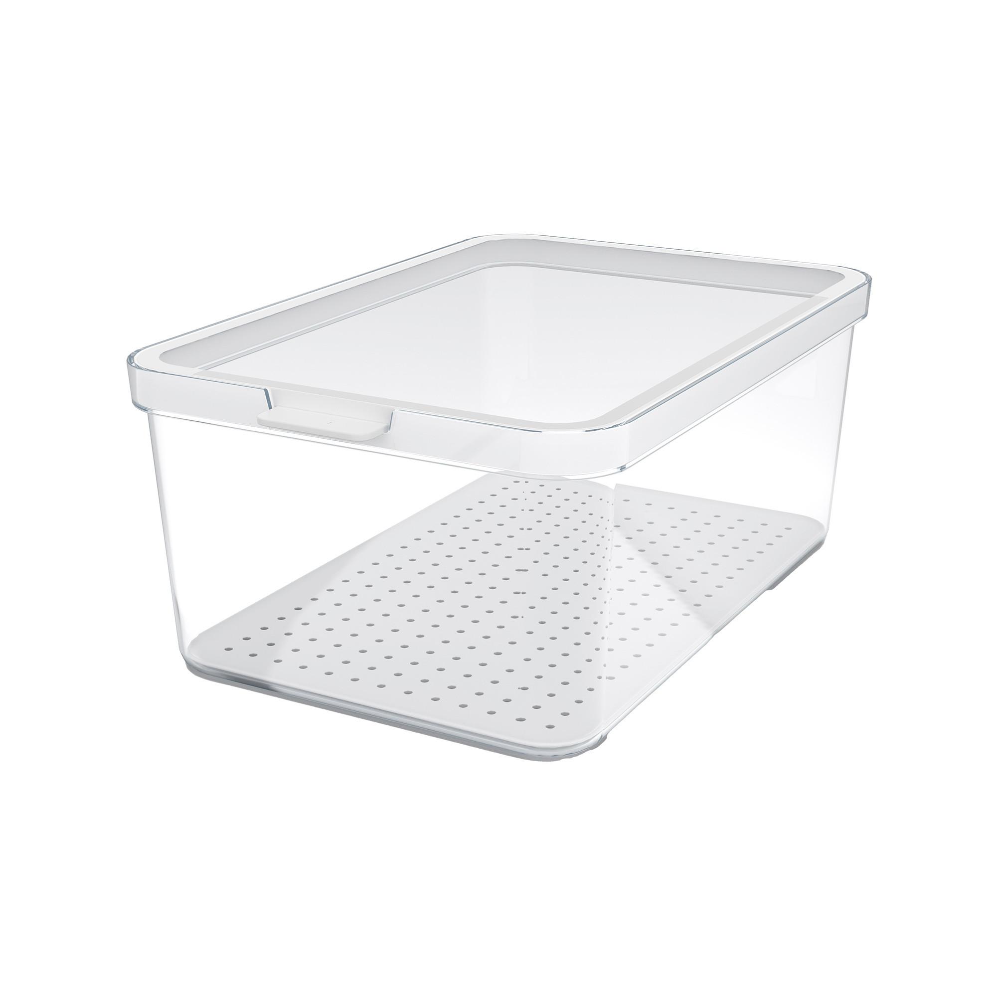 - Jeder Kühlschrankorganizer besteht aus einem hochtransparenten Unterteil, einem hochtransparenten Mehrzweck-Deckel mit Griff und einem herausnehmbaren Einsatz
