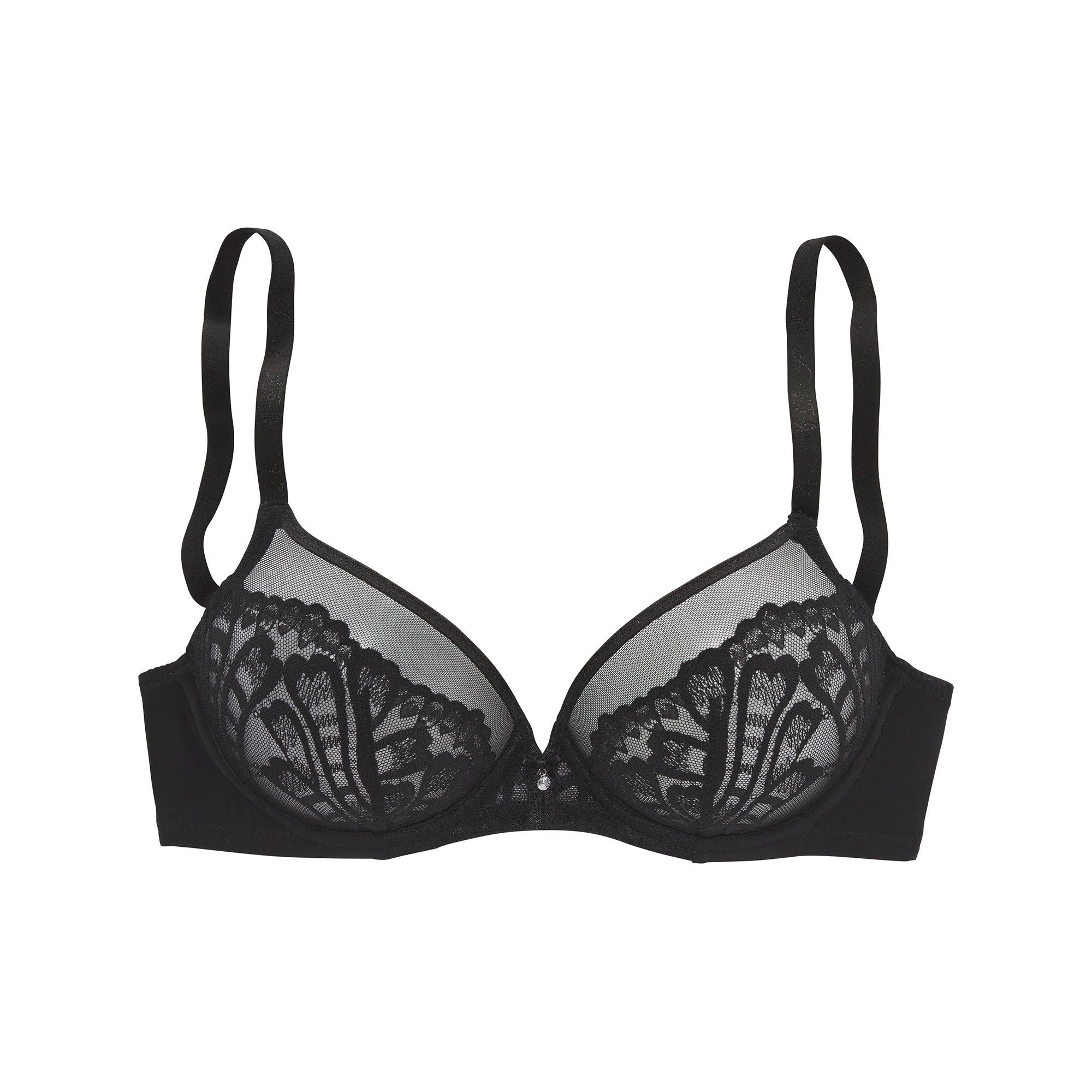 Dieser Bügel-BH verfügt über zarte Spitzendetails an den Cups und bietet eine Mischung aus Eleganz und Halt. Das Design umfasst verstellbare Träger für eine individuelle Passform und einen kleinen dekorativen Anhänger in der vorderen Mitte, der einen Hauch von Raffinesse verleiht.