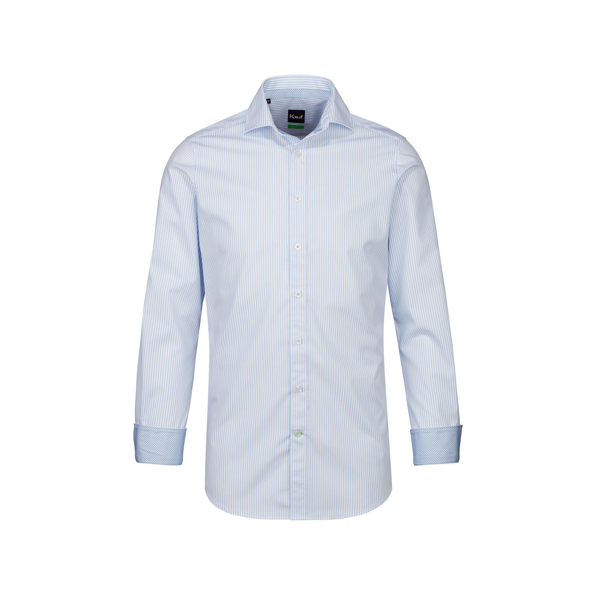 Unser Kauf London Hemd Slim Line mit Kontrast ist in der stark taillierten Slim Fit-Passform aus 100% veredelter Baumwolle in bewährter Kauf-Qualität gefertigt. Das feine hellblaue Hemd mit Streifenmuster ist ein gutes Accessoire zu Jeans aber auch zu Chinohosen. Es zählt in unserem Shop zu den Must-Haves, die jede Herrengarderobe aufwerten. Dank der veredelten, bügelarmen Baumwolle trägt sich das Hemd im Modell London Slim Line besonders angenehm leicht und komfortabel und bleibt lange knitterfrei.