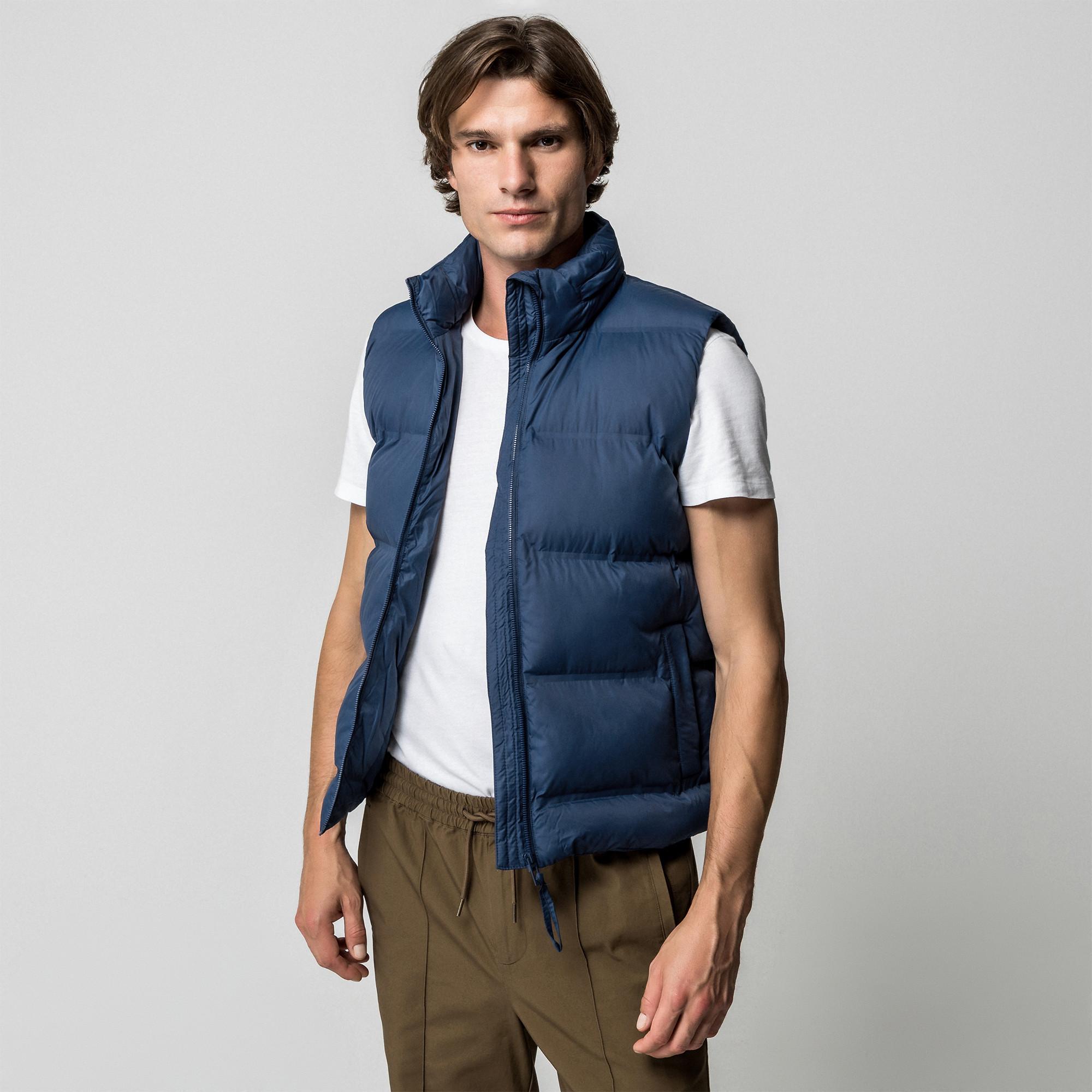 Das Gilet überzeugt mit praktischen Details und nachhaltigem Material aus recyceltem Polyester. Es verfügt über eine verstellbare Kapuze mit Tunnelzug, die sich im Kragen verstauen lässt, sowie über einen durchgehenden Reissverschluss. Offene Seitentaschen mit weicher Fleece-Fütterung bieten praktischen Stauraum oder halten die Hände angenehm warm.