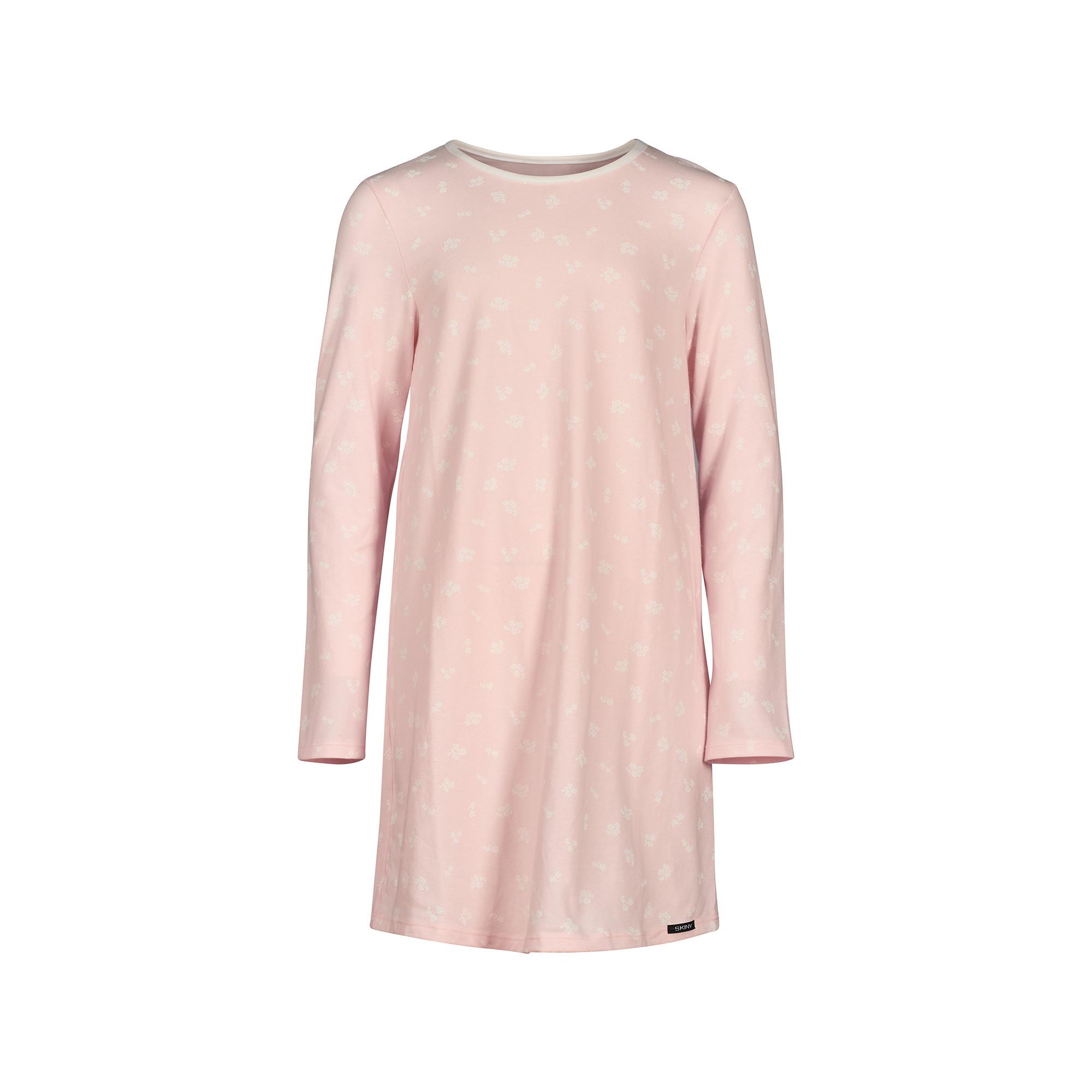Das langärmelige Nachthemd von Skiny ist lang geschnitten und trägt auf der Brust ein freundliches Herz. Der Rundhalsausschnitt ist farblich passend gemustert.
