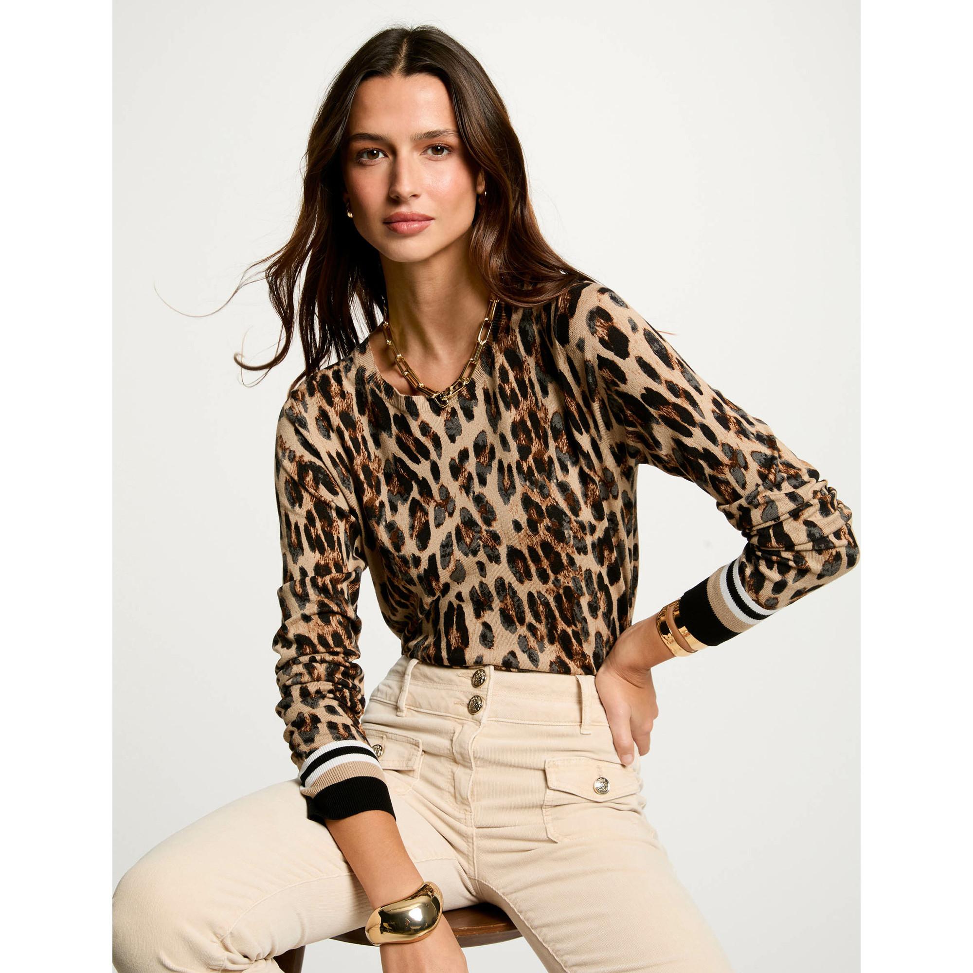 MORGAN Leopardenmuster Pullover mit gestreiften Ärmelbündchen