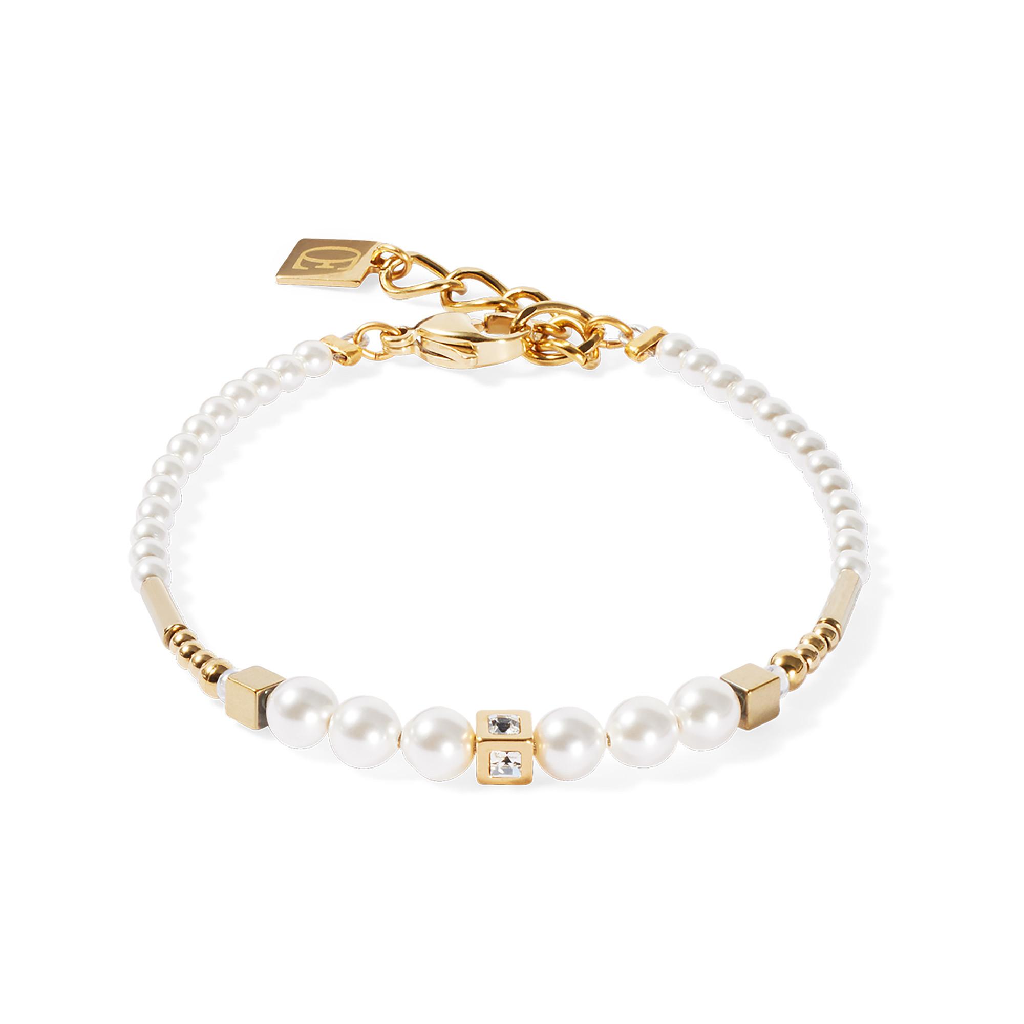 Schimmernde Leichtigkeit für Ihr Handgelenk – das Shimmering Princess Pearls Armband in Gold und Weiss kombiniert edle Swarovski® Kristallperlen mit feinen goldenen Akzenten. Die sanfte Farbpalette und das minimalistische Design machen dieses Armband zu einem stilvollen Begleiter für Tag und Nacht.
