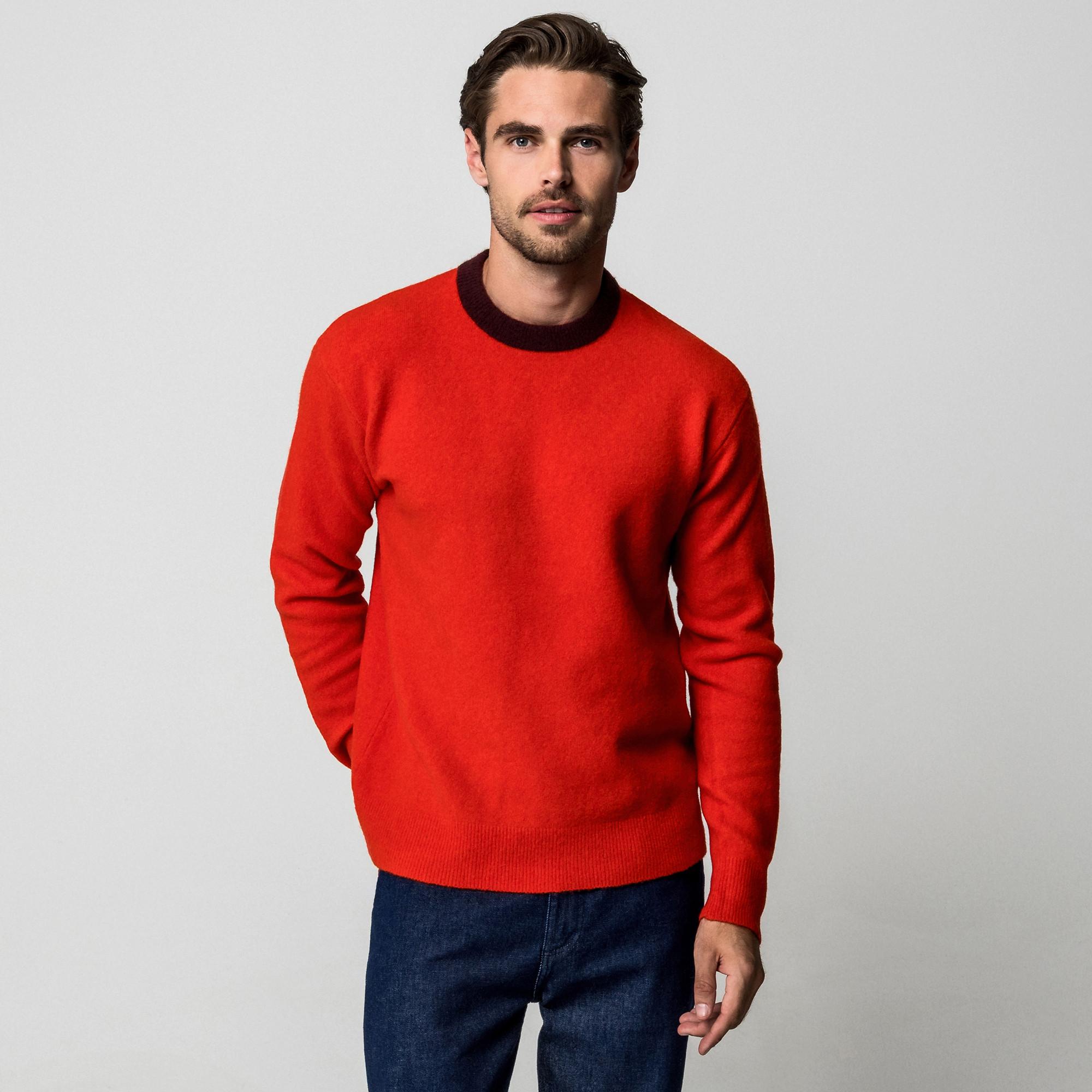 Dieser Pullover mit kontrastfarbenem Ausschnitt ist aus einer weichen Woll-Mischung hergestellt, mit langen Ärmeln und Rippstrick-Abschlüssen.