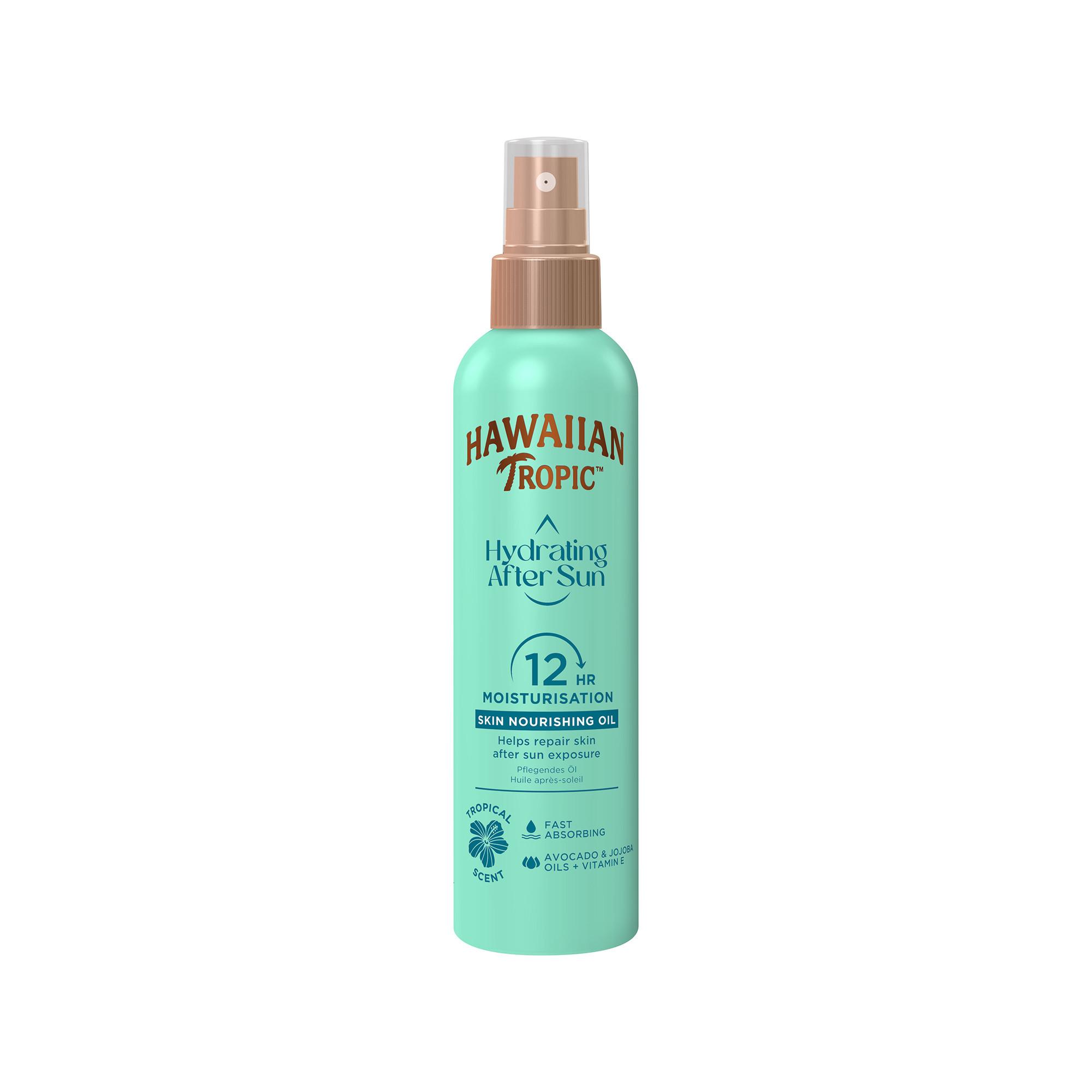 Hawaiian Tropic Hydrating After Sun Skin Nourishing Oil (150ml). Verwöhne deine Haut nach dem Sonnenbad mit unserer leichten, hautpflegenden After-Sun Öl-Formel. Das ultra-feuchtigkeitsspendende Öl umhüllt die Haut wie ein zarter Nebel und wurde speziell entwickelt, um deine Haut nach dem Sonnenbad zu pflegen. Diese leichte Formel spendet 12 Stunden lang Feuchtigkeit und hinterlässt sonnenstrapazierte Haut super geschmeidig und zart genährt. Mit Inhaltsstoffen wie Vitamin E, Avocado- und Jojobaöl entsteht eine hautfreundliche After-Sun Pflege, der du vertrauen kannst und die deiner Haut lang anhaltend Feuchtigkeit spendet. Der herrliche ikonische Hawaiian Tropic Duft ist ein luxuriöses und beruhigendes Erlebnis für deine Sinne und nimmt dich mit auf eine Reise ins Paradies. Deine Haut behält ihren sonnengeküssten Glow und fühlt sich revitalisiert an. Let's glow!