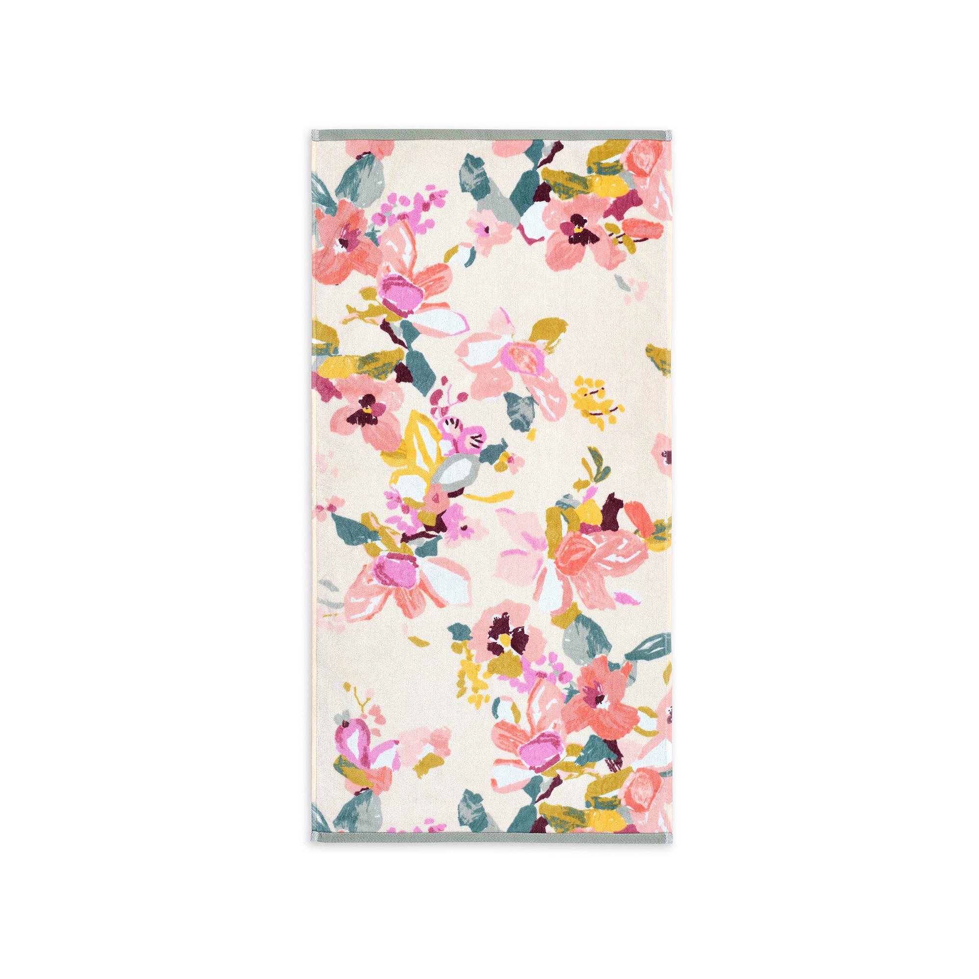Verleihen Sie Ihrem Badezimmer einen frischen, floralen Akzent mit dem Emeline Badetuch. Dieses ultraweiche Baumwolltuch zeigt handgemalte, moderne Blüten in lebendigen Farben – ein echter Blickfang in jedem Raum.