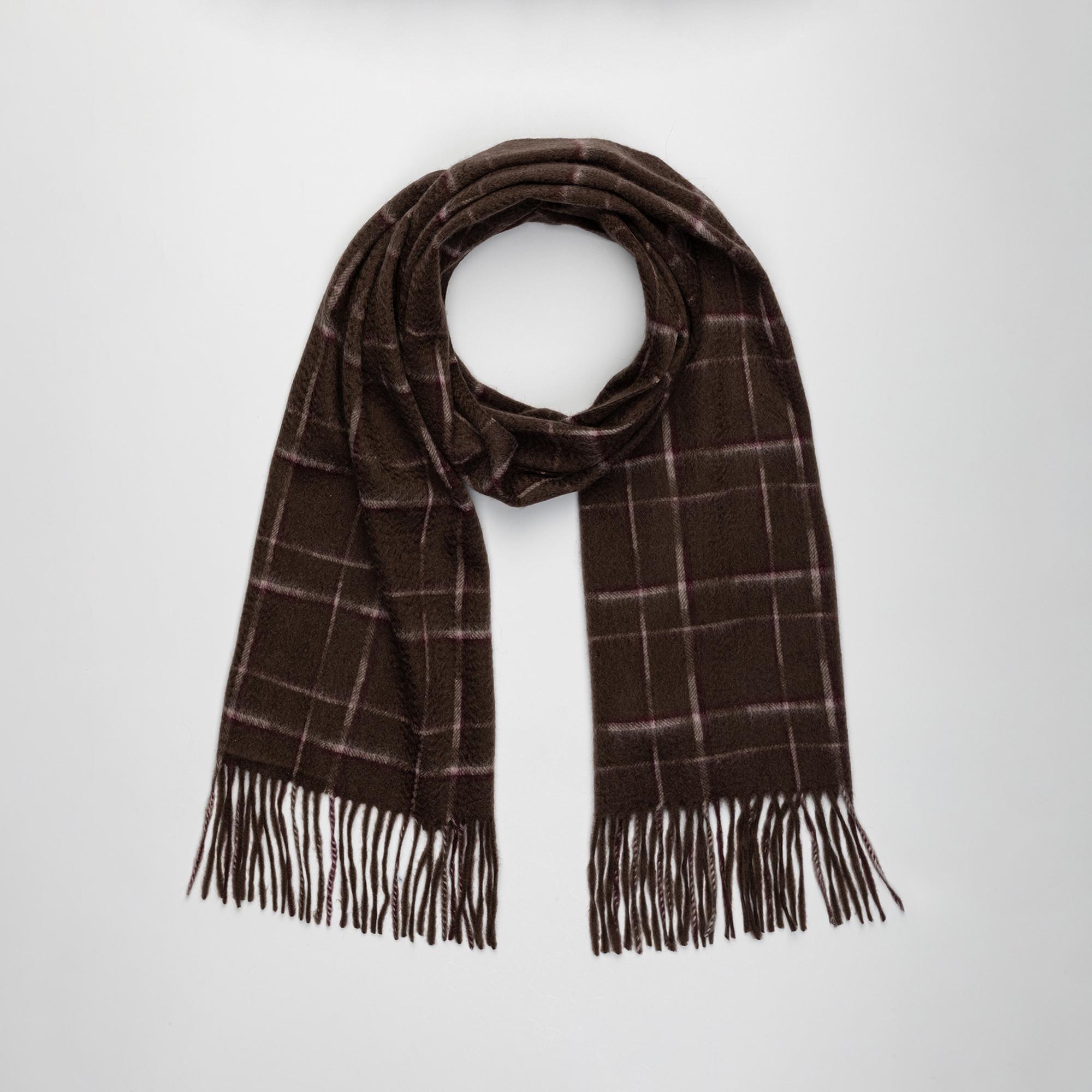 Dieser Kaschmir-Schal ist mit einem klassischen Karomuster versehen und bietet ein zeitloses Accessoire für verschiedene Outfits. Das Design umfasst Fransen an beiden Enden, die dem Gesamtbild eine traditionelle Note verleihen.