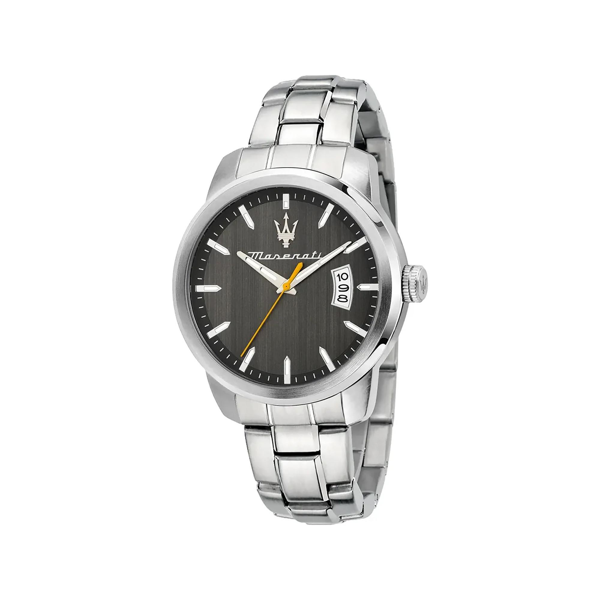 Diese stilvolle Maserati Herrenuhr kombiniert ein robustes Edelstahlgehäuse (42 mm) mit einem präzisen, batteriebetriebenen Quarzwerk von Miyota und überzeugt durch ihr elegantes blaues Zifferblatt mit leuchtenden Zeigern und Datumsanzeige. Das zweifarbige Metallarmband in Silber und Gold, die Wasserdichtigkeit bis 5 ATM sowie das kratzfeste Mineralglas machen sie zum idealen Begleiter für Alltag und Business.