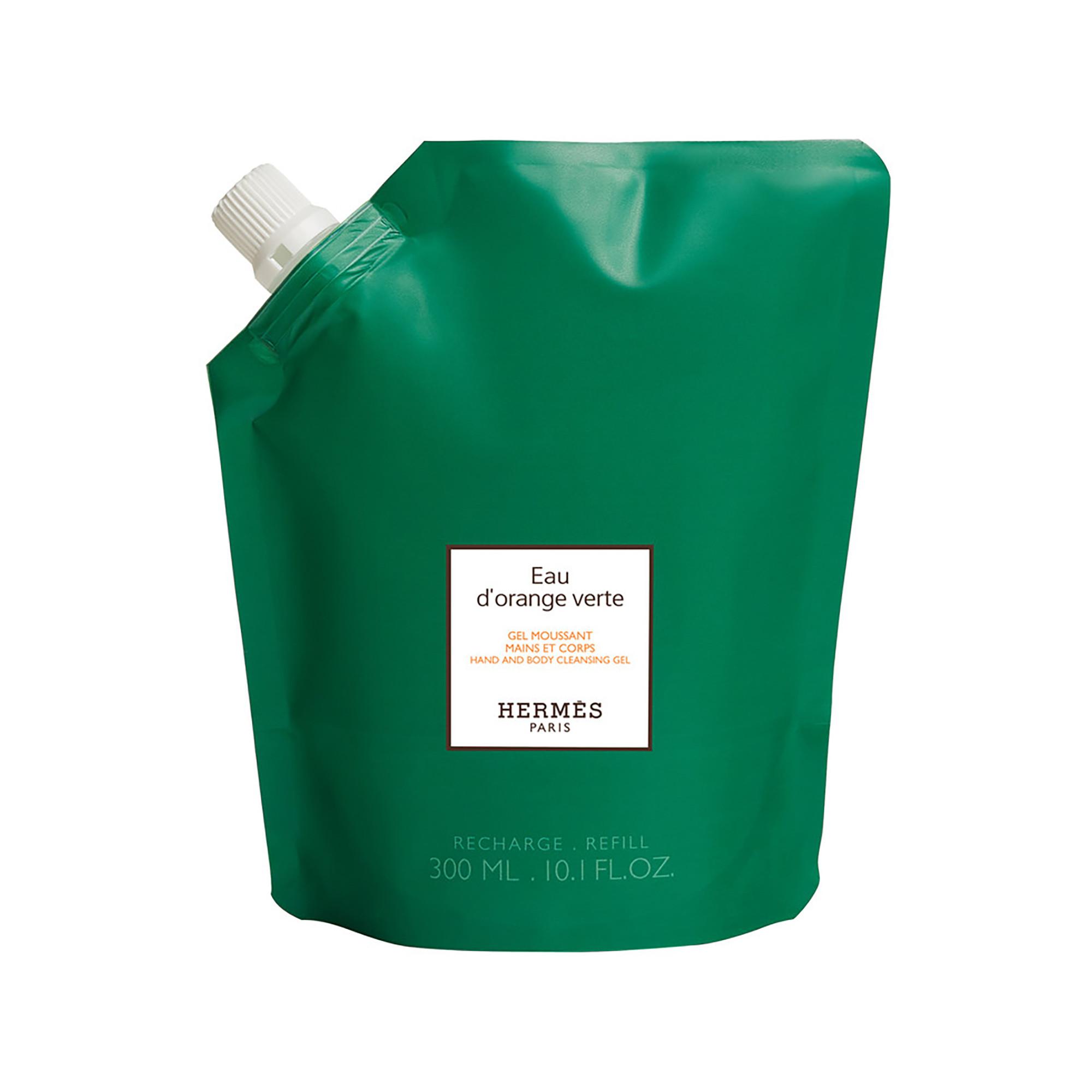 Der Flakon ist aus recycelbarem Glas gefertigt. Mit dem Nachfüllset des Schaumgels für Hände und Körper Eau d’orange verte lässt sich der 300-ml-Flakon wieder befüllen.