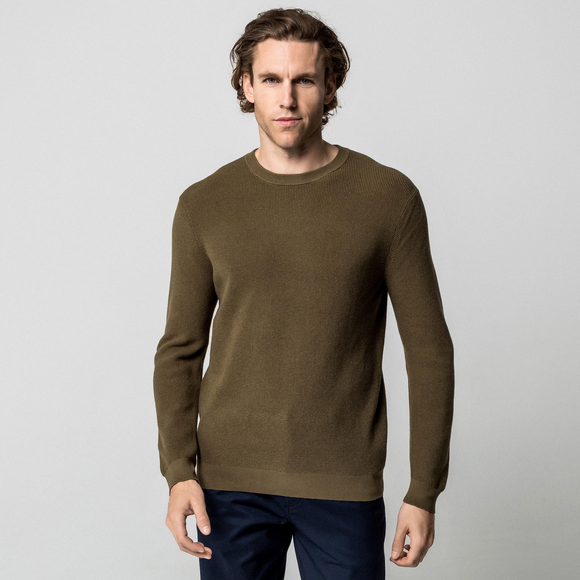 Dieser Pullover ist aus einem angenehm weichen Baumwoll-Mix hergestellt. Der Strick-Pullover ist in klassischem Waffelpiqué gefertigt mit Rundhalsausschnitt, langen Ärmeln und gerippten Abschlüssen.