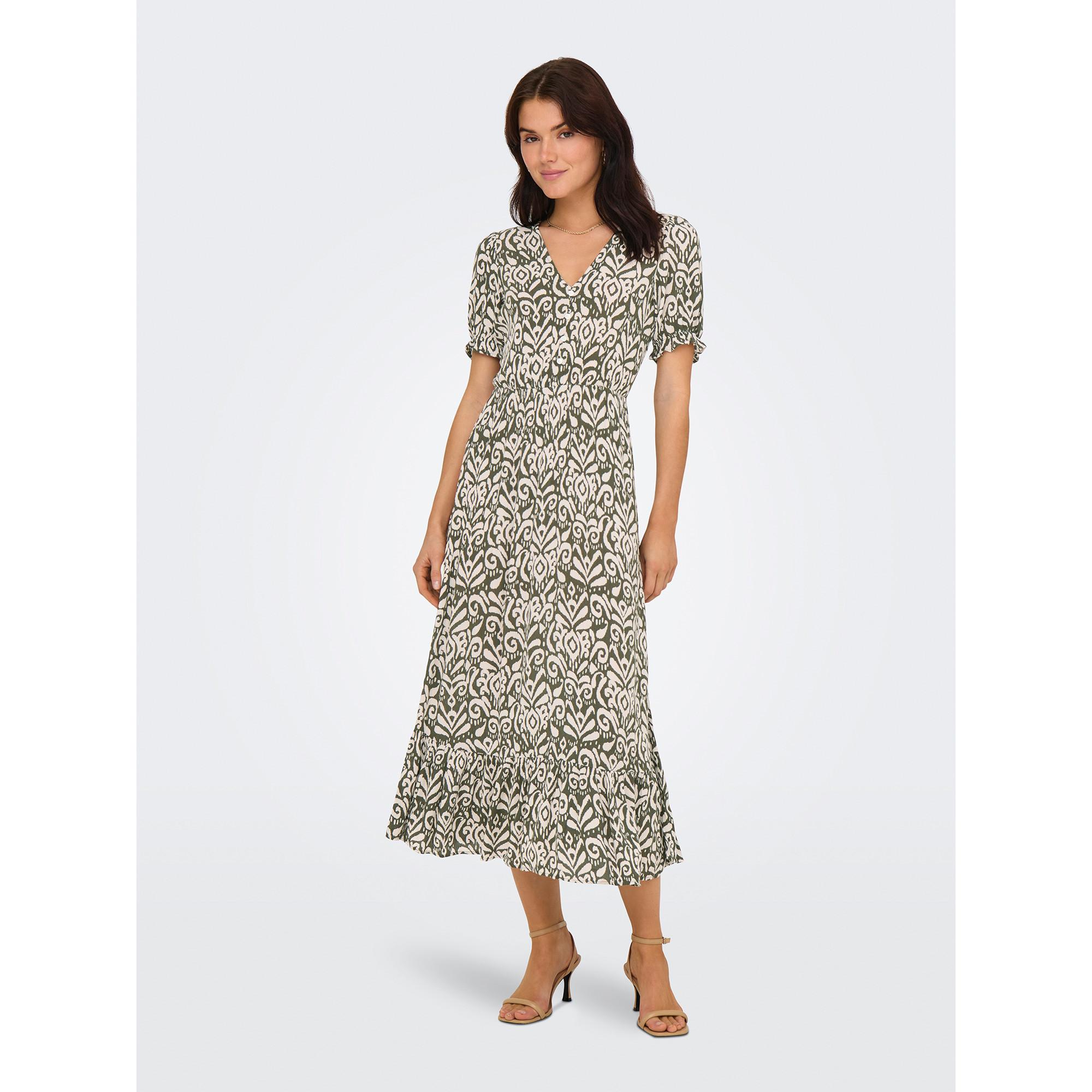 ONLY, Gemustertes Midikleid V-Ausschnitt