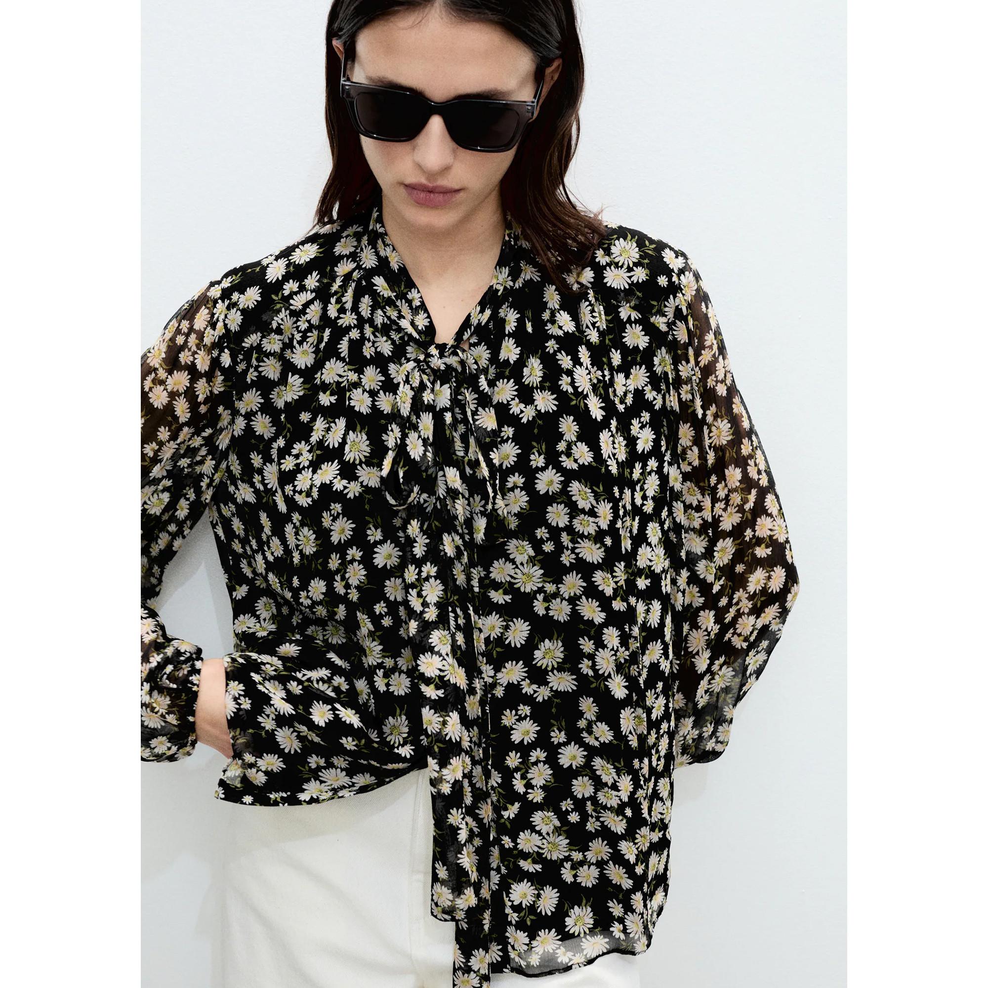 MANGO, BELLE Florale Bluse mit Schleifenkragen