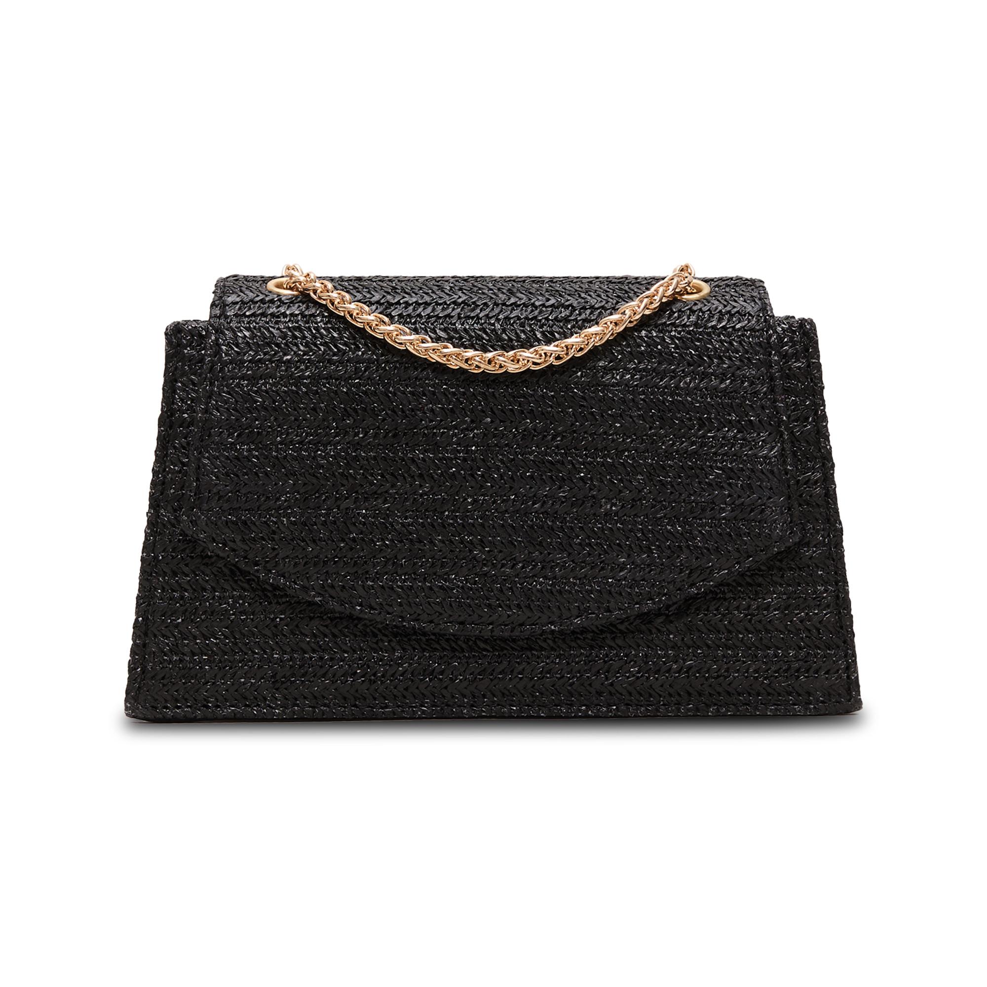 Diese Clutch zeichnet sich durch eine gewebte Textur und ein raffiniertes Design aus, was sie zu einem vielseitigen Accessoire für verschiedene Anlässe macht. Der Überschlagverschluss verleiht einen klassischen Touch, während der goldfarbene Kettenriemen ein elegantes Detail bietet und ein bequemes Tragen ermöglicht.