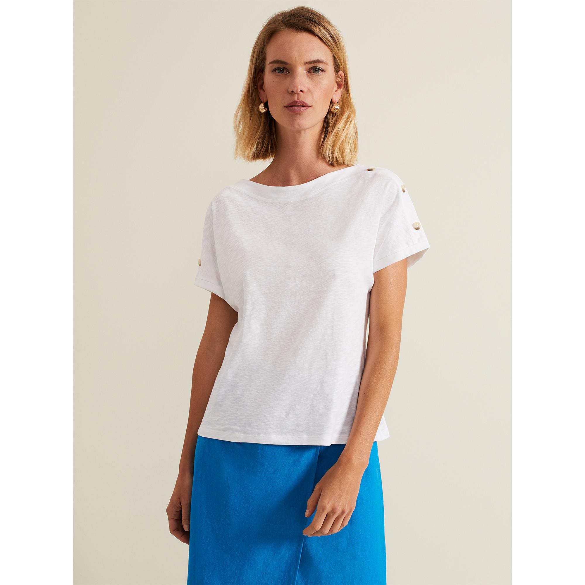 Unser komfortables T-Shirt aus 100 % Baumwolle ist mit einem zusätzlichen Knopfdetail versehen. Es passt das ganze Jahr über zu jedem Einzelteil.
