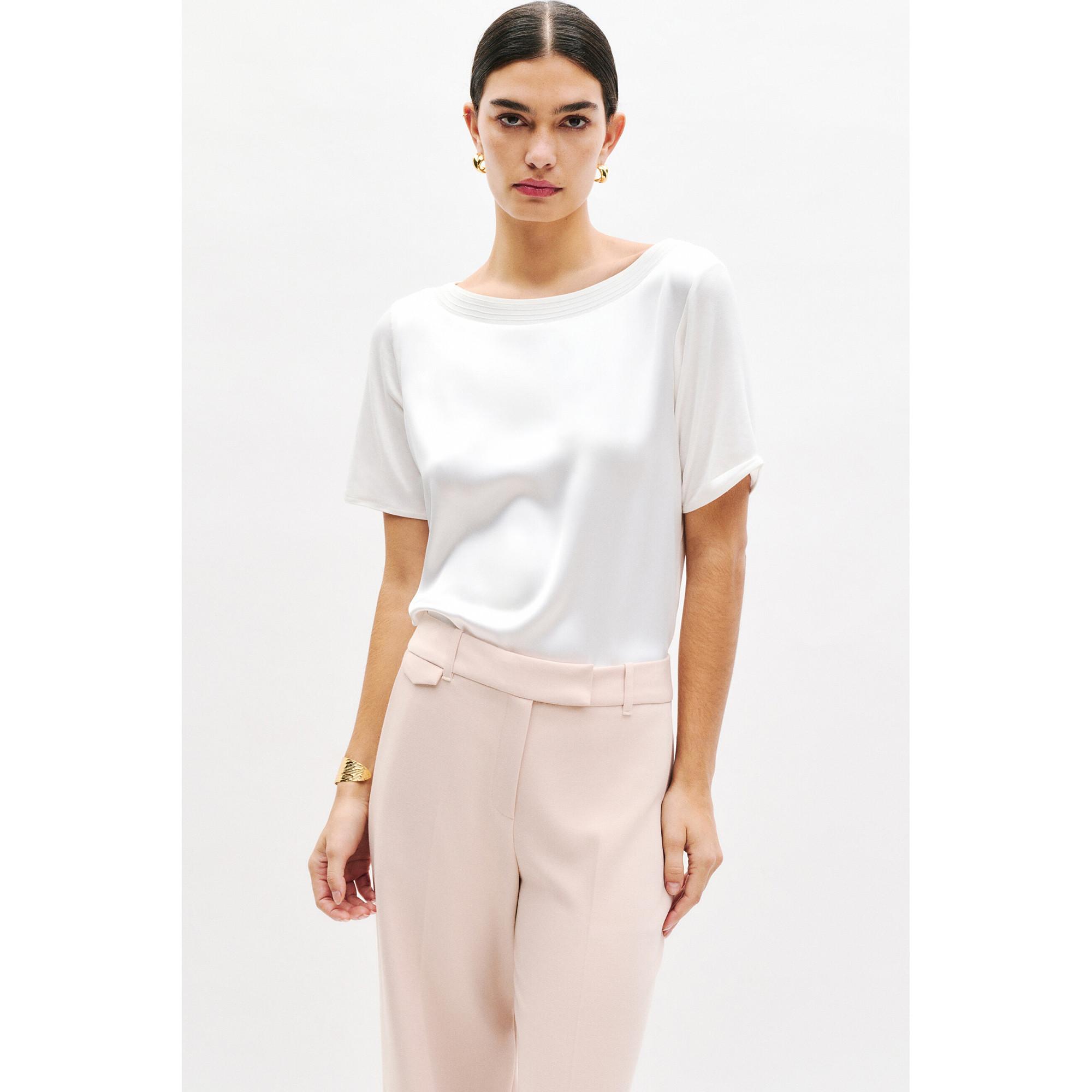 Dieses T-Shirt verfügt über einen klassischen Bootshals, der eine zeitlose und elegante Silhouette bietet. Das Design ist vielseitig und eignet sich für verschiedene Anlässe und lässt sich leicht mit unterschiedlichen Outfits kombinieren.