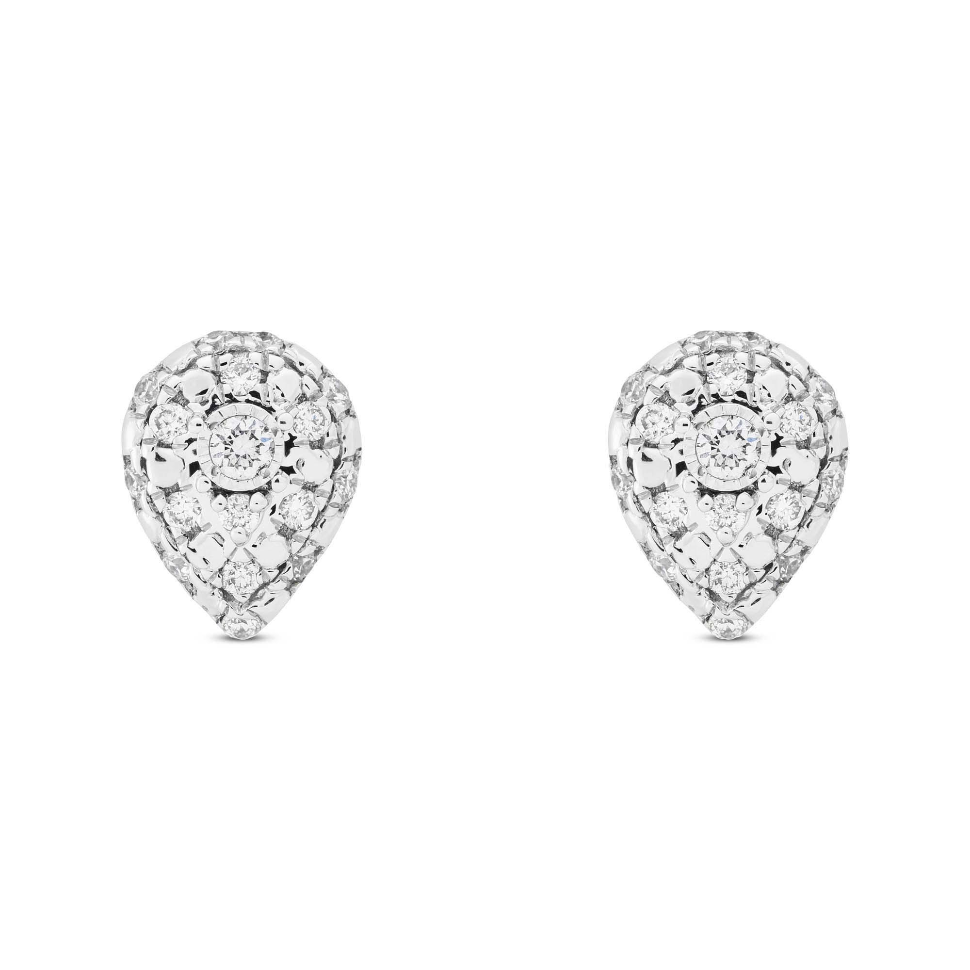 Diese Diamant-Ohrstecker von Sergio Ferris sind tropfenförmig designt, hergestellt aus 18-karätigem Weissgold mit insgesamt 34 Brillanten. Geschlossen wird das einzigartige Ohrsteckerpaar per Butterfly-Verschluss.