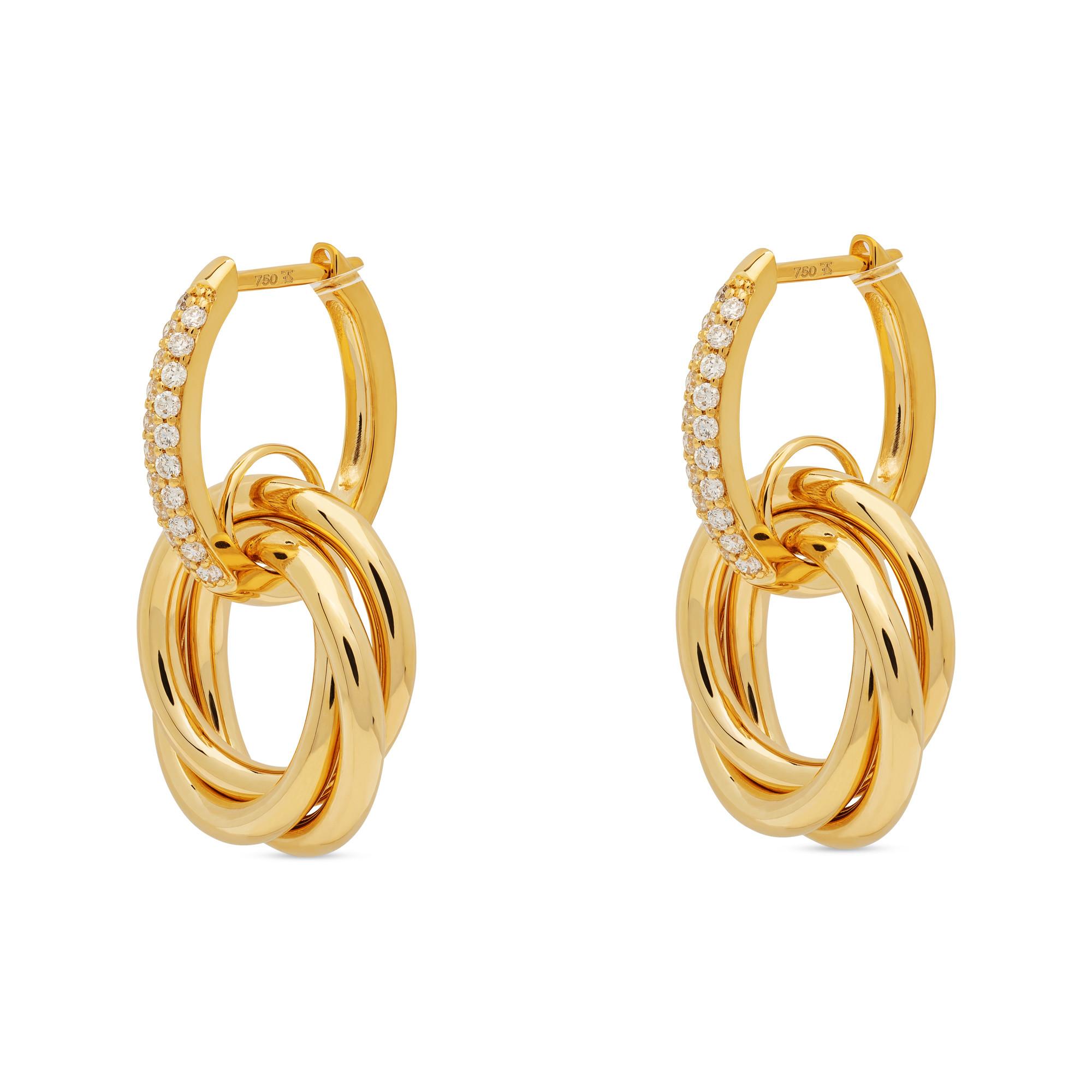 Diese Creolen von Sergio Ferris setzen auf klassisches Design mit trendigen Details. Die Ohrringe sind aus 18-karätigem Gelbgold hergestellt. Insgesamt 40 Diamanten mit Brillantschliff veredeln die einzigartige Schmuckkreation.
