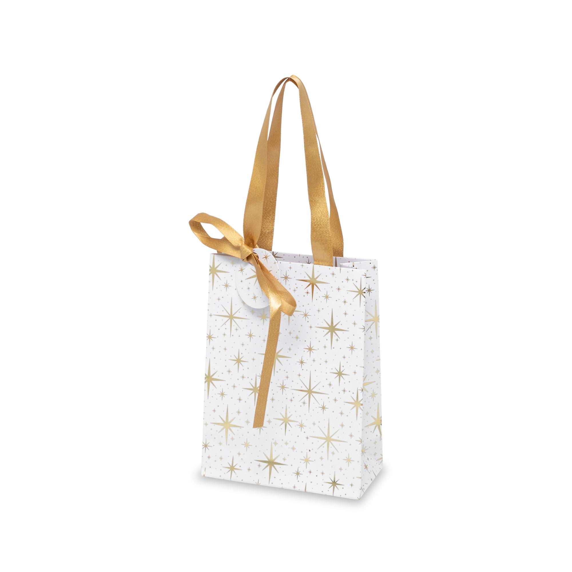 Diese Geschenktasche mit Gold-Print von Manor macht das Schenken herrlich unkompliziert. Mit Satin-Tragebändchen und rundem Anhänger für persönliche Botschaften macht diese Tasche stilvolle Geschenkverpackungen zum Kinderspiel. Sie ist in verschiedenen Grössen und Ausführungen erhältlich.