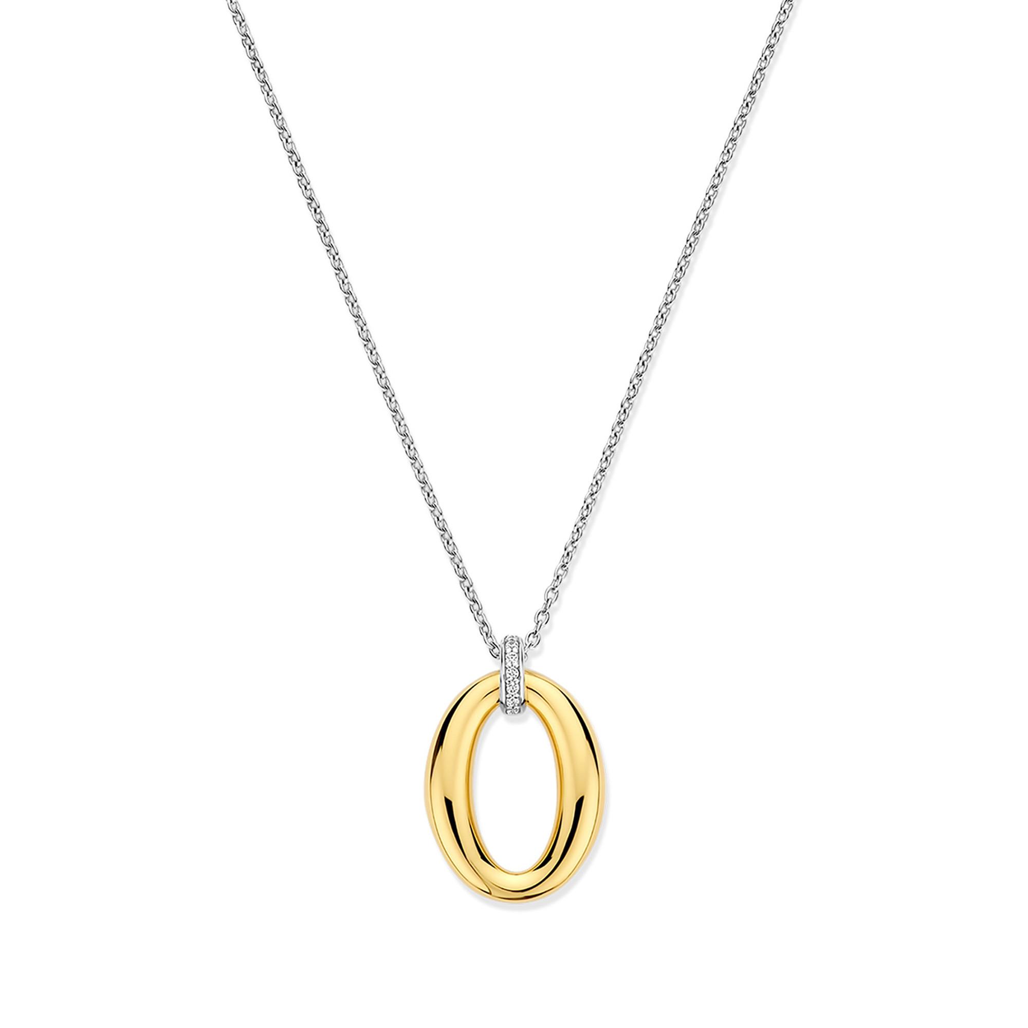 Setzen Sie ein mutiges und dennoch raffiniertes Statement mit dieser Ti Sento Halskette aus vergoldetem Silber. Gefertigt aus 925er Sterlingsilber und vergoldet, besticht diese Kette durch einen ovalen Anhänger, der mit einer zarten Reihe von Zirkonia-Pavé verziert ist. Dank ihrer nickelfreien und hypoallergenen Eigenschaften bietet sie langanhaltenden Tragekomfort und Qualität.