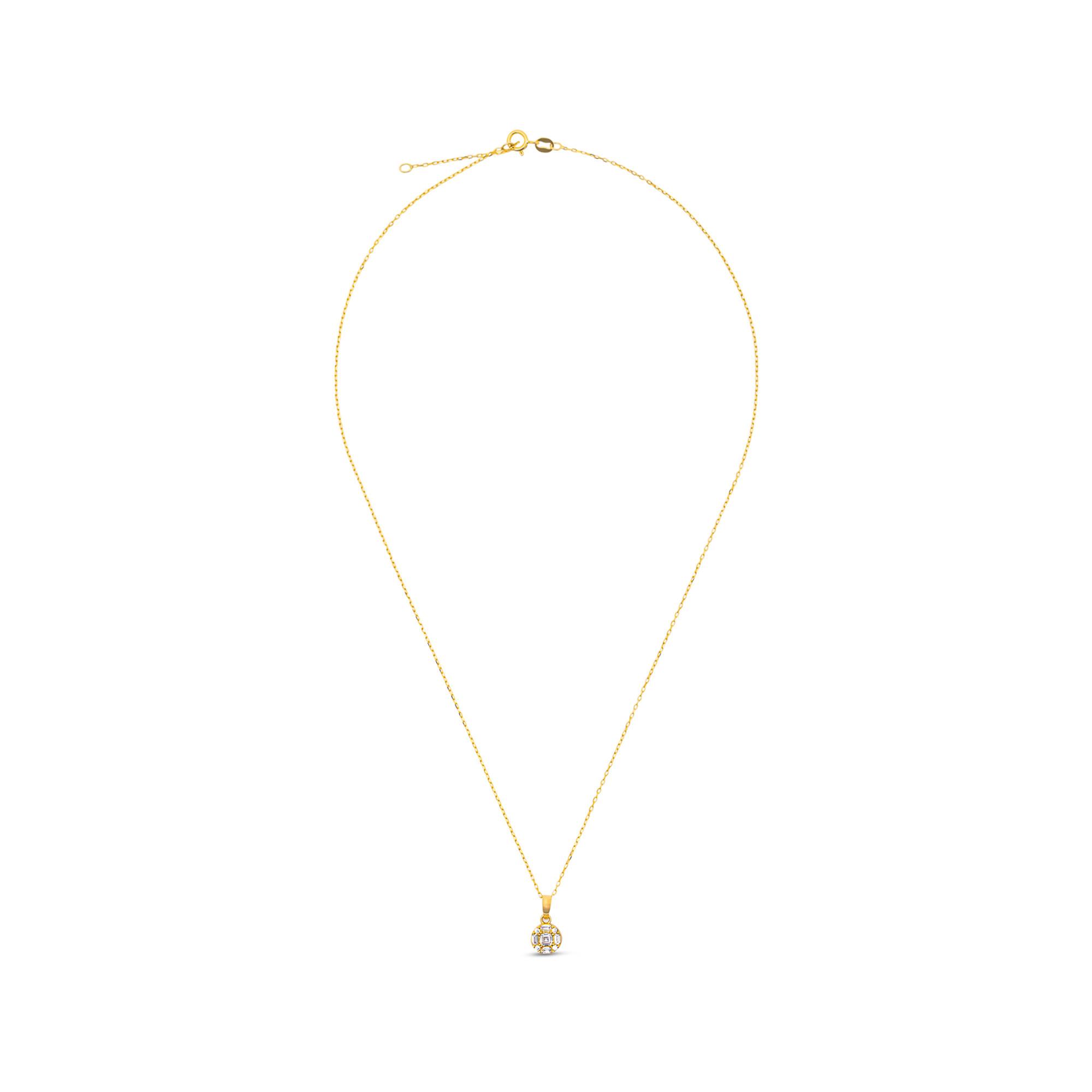 Diese Halskette von Studio Marquise ist aus 18-karätigem Gelbgold gefertigt, mit einem frei beweglichen runden Anhänger, der mit facettiertem Zirkonia lichtdurchlässig besetzt ist. Der filigrane Schmuck ist in der Länge variabel und schliesst per Federringverschluss.