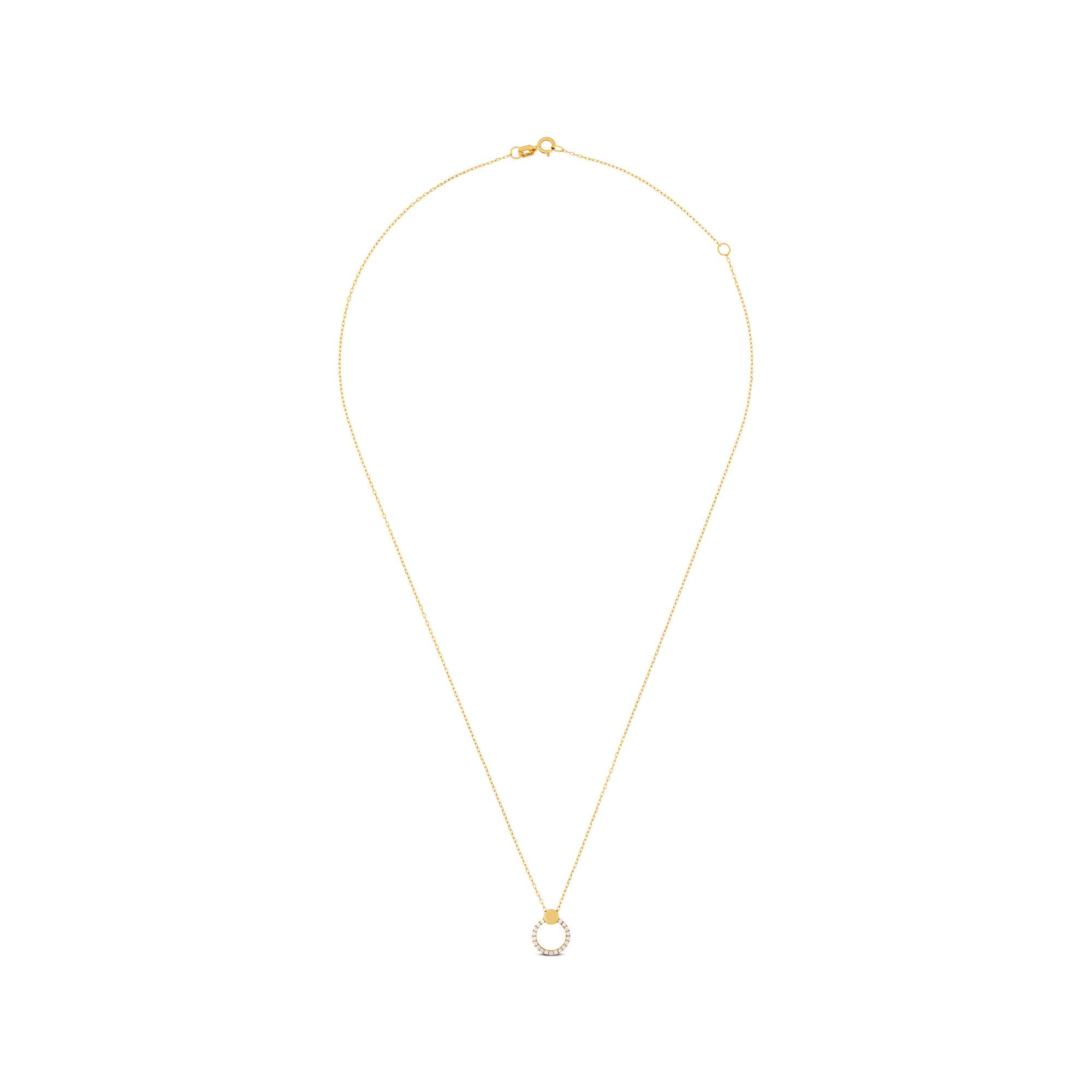 Dieses Collier von L'Atelier Gold 18 Karat by Manor ist mit puristischem Design und starkem Charakter ein Statement Piece mit edler Ausstrahlung. Die Kette hat einen runden Anhänger, der mit Zirkonia besetzt ist. Sie ist weitenverstellbar und lässt sich stilvoll durch den Federringverschluss schliessen.