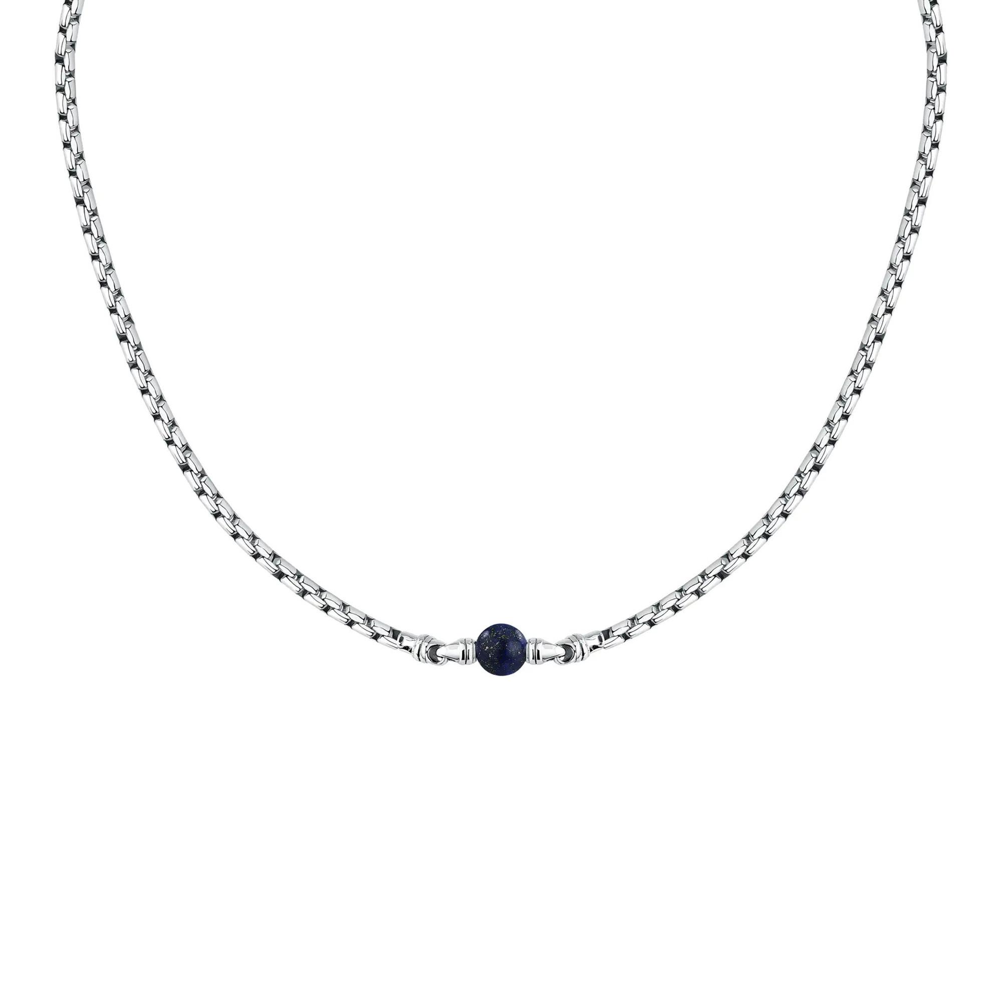 Die Morellato Pietre Halskette für Herren ist ein stilvolles Accessoire aus Edelstahl und natürlichen Steinen. Mit einem Gewicht von 21,090 Gramm und einer Länge von 45 cm plus 5 cm Verlängerung ist sie mit einem schwarzen Lapislazuli verziert. Die Halskette wird mit einem Echtheitszertifikat und in der originalen Morellato-Verpackung geliefert.