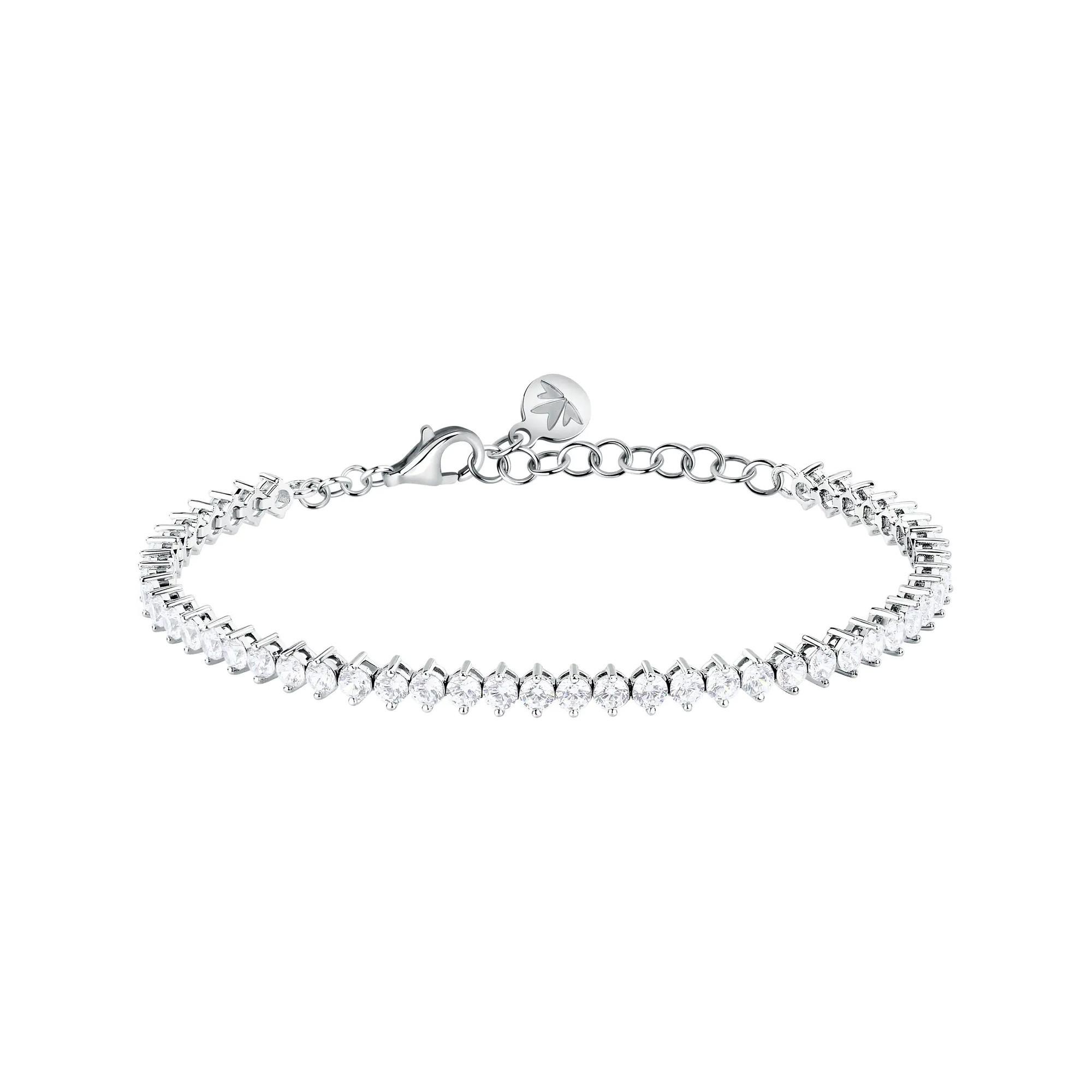 Das Morellato Tesori Armband für Damen ist ein elegantes Tennisarmband aus nachhaltigem Silber. Mit einem Gewicht von 6,950 Gramm und einer Länge von 16 cm plus 3 cm Verlängerung ist es mit weissen Zirkonen verziert. Das Armband wird mit einem Echtheitszertifikat und in der originalen Morellato-Verpackung geliefert.