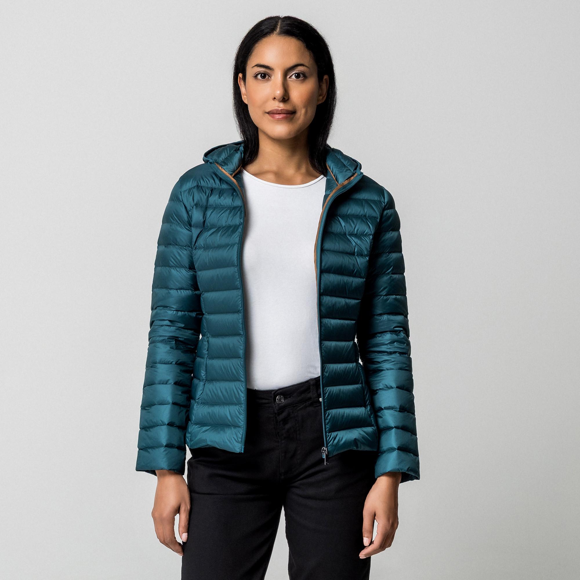 Diese Kapuzen-Daunenjacke bietet Wärme und Komfort und ist eine vielseitige Ergänzung für jede Garderobe. Ihr Design sorgt für eine schlanke Silhouette und schützt gleichzeitig vor den Elementen.