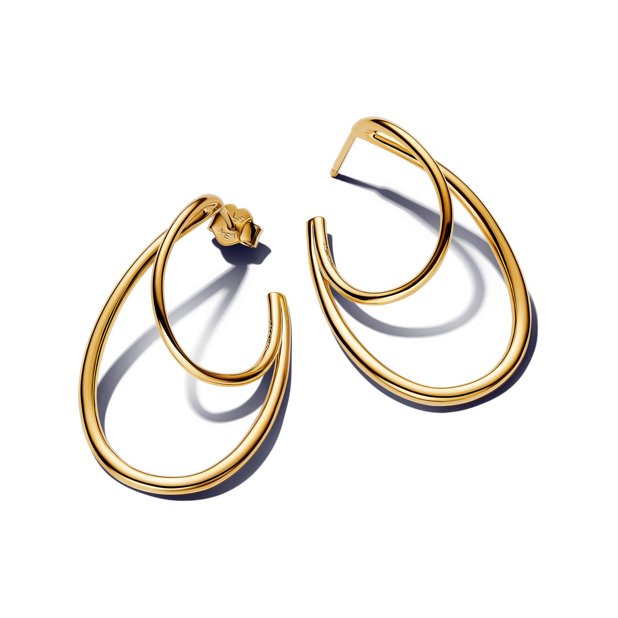 Veredle deinen Stil mit den Organisch Geformten Doppelten Creolen-Ohrringen, die fachmännisch aus vergoldetem Metall gefertigt sind. Diese einzigartigen Ohrringe haben asymmetrische Ovale und einen Schmetterlingsverschluss, perfekt, um ein Statement zu setzen.