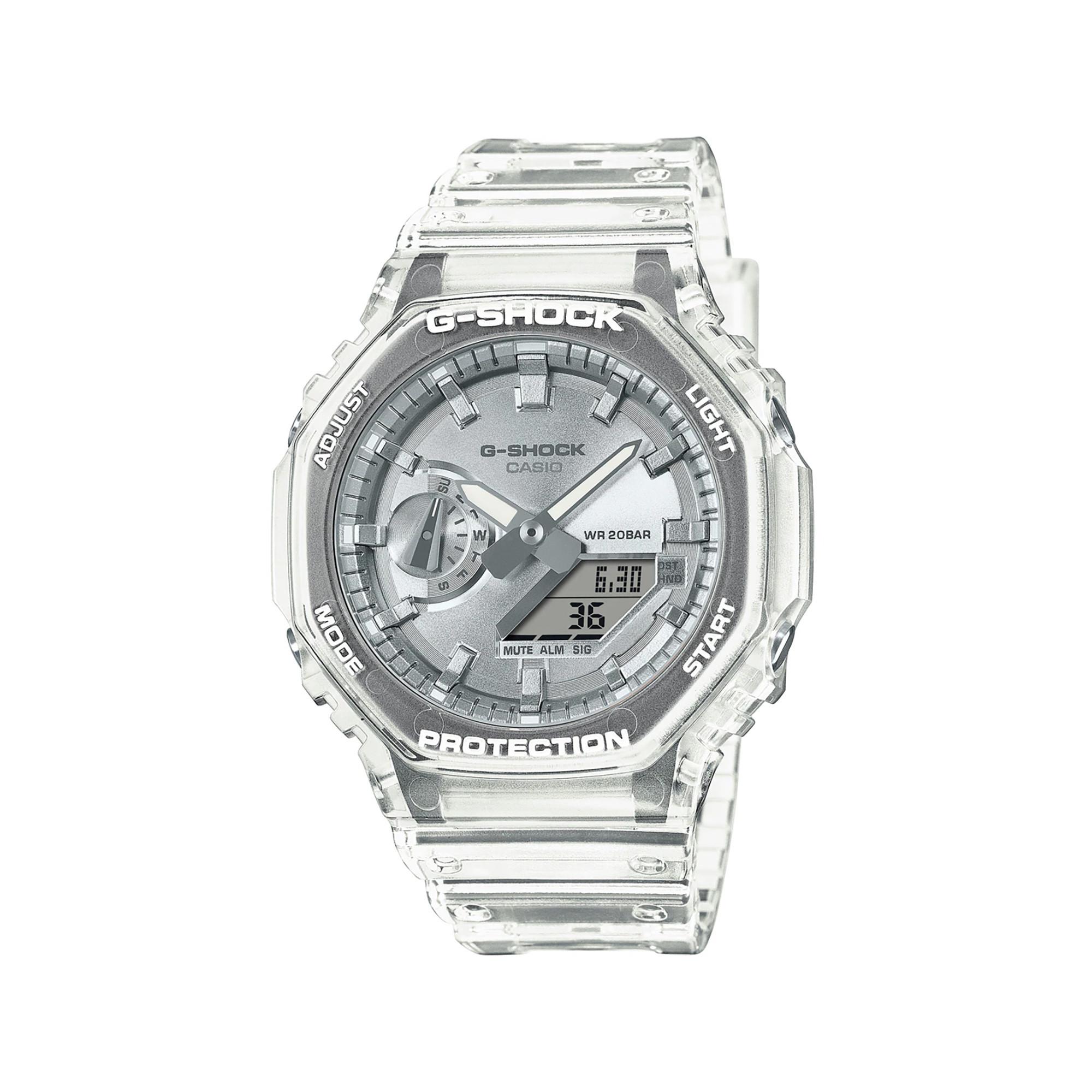 Diese Analoguhr vereint ein auffälliges Design mit robuster Funktionalität – mit achteckiger Lünette, schimmerndem Zifferblatt und einem transparenten Armband für einen modernen Street-Style. Dank Carbon Core Guard-Struktur, 20 bar Wasserdichtigkeit, Weltzeitfunktion, LED-Beleuchtung und weiteren Features ist sie ein stylischer und zuverlässiger Begleiter für Alltag und Abenteuer.