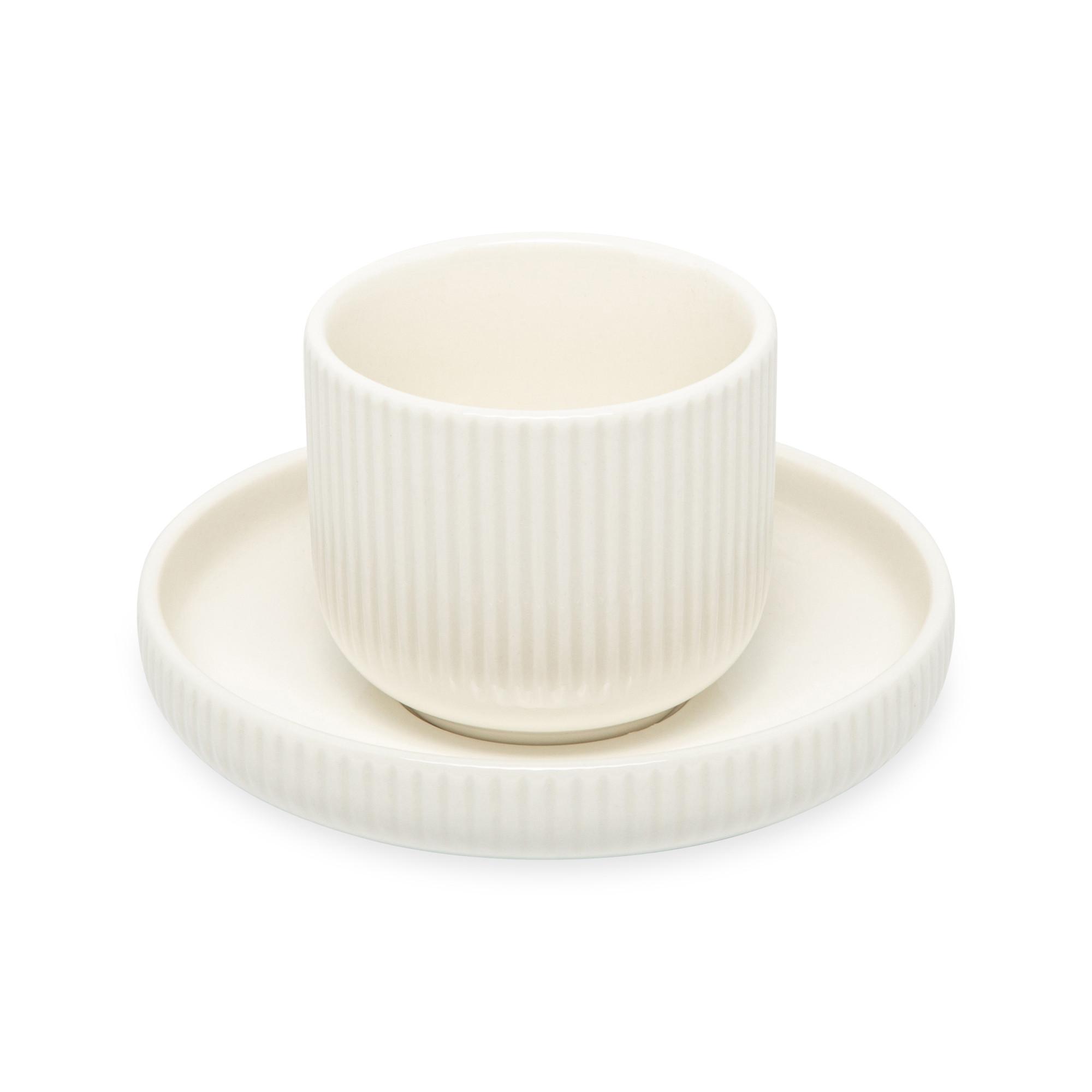 Dieses Geschirr-Set von Manor besteht aus Espresso- und Untertasse. Hergestellt aus Porzellan mit Rillenstruktur zeichnet sich das Kaffeegeschirr durch charakteristisches, zeitgemässes Design aus.