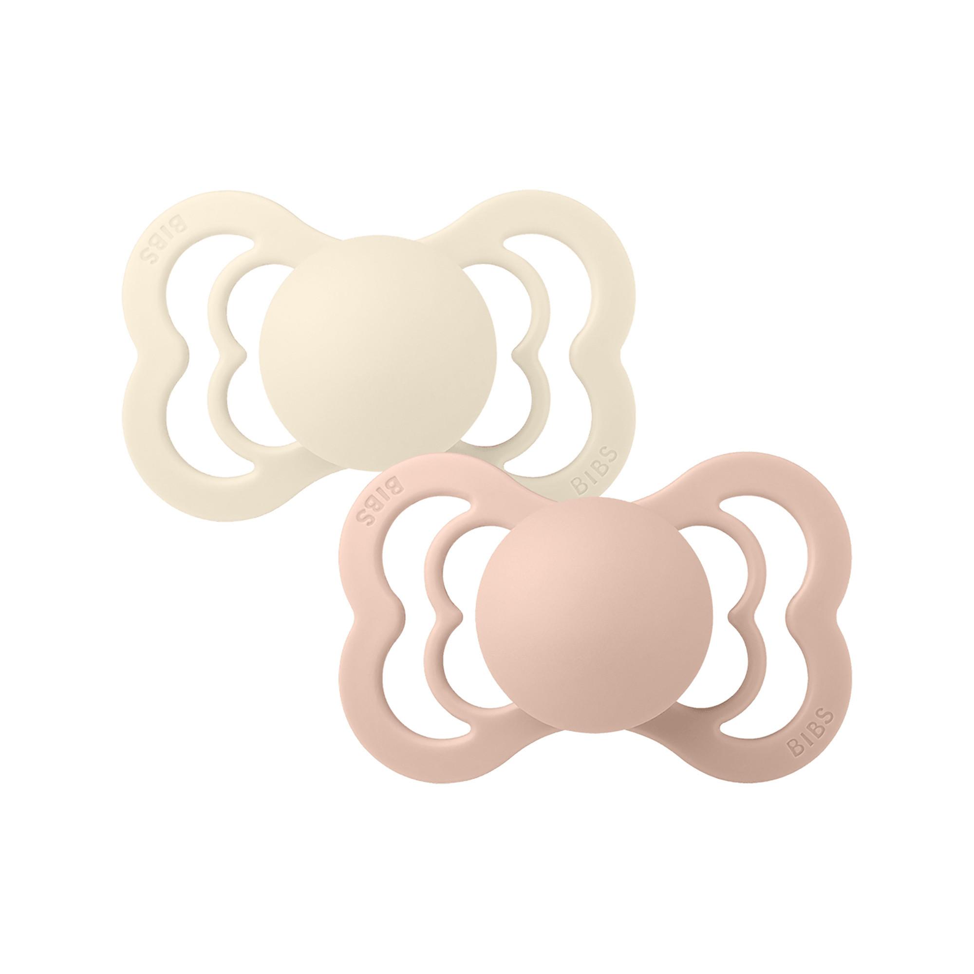 Der Supreme 2 Pack in Ivory und Blush von Bibs bietet mit seinem symmetrischen Sauger und grosszügigen Belüftungsöffnungen höchsten Komfort für Ihr Baby. Das elegante Design mit breitem, hautfreundlichem Schild sorgt für sicheren Halt und verhindert zuverlässig Feuchtigkeitsstau.