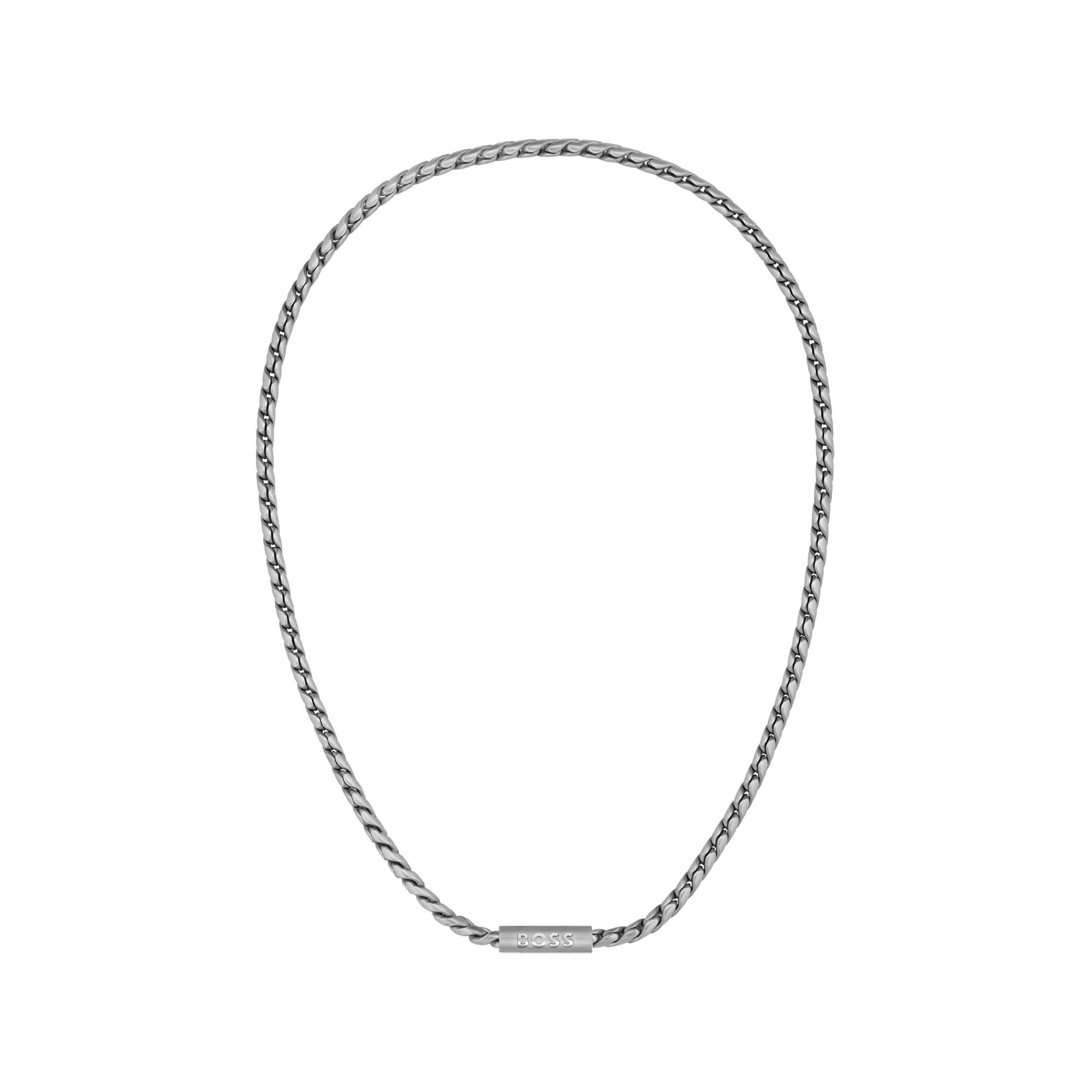 Die Boss Halskette ist aus hochwertigem Edelstahl gefertigt und hat das Logo eingraviert. Dieses elegante Accessoire vereint Stil und Raffinesse und ist perfekt für den modernen Look.