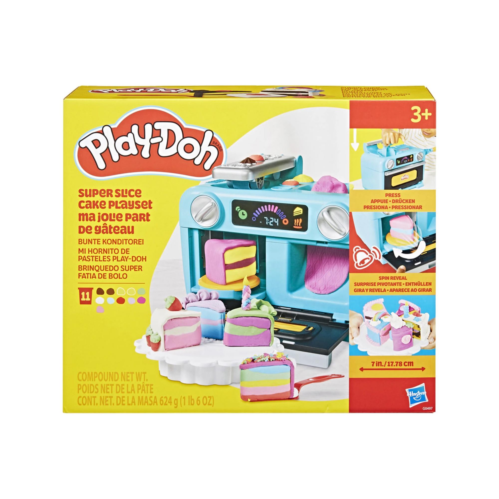 Kreire riesige bunte Kuchenstücke, indem du den Ofen füllst und den Hebel nach unten drückst. Die Scheiben drehen sich beim Herauskommen. Es gibt unzählige Möglichkeiten, den Kuchen zu dekorieren – unter anderem mit einer neuen Rolle mit Muster!