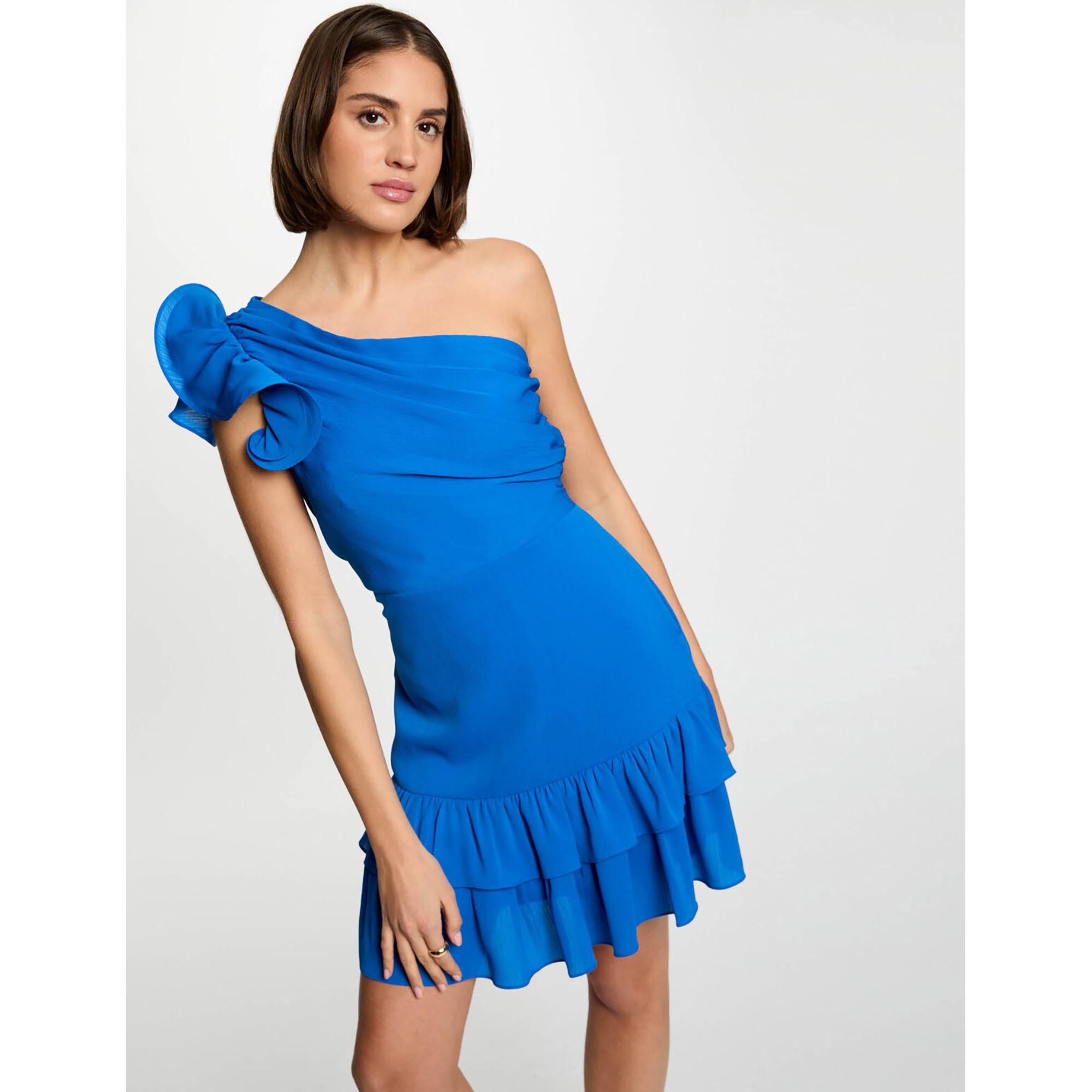 Das kurze Kleid von Morgan ist ein stilvolles Kleidungsstück. Es zeichnet sich durch seine taillierte Passform, die verspielten Volants und den gestuften Rüschensaum aus. Der Look ist modern und elegant, perfekt für besondere Anlässe.