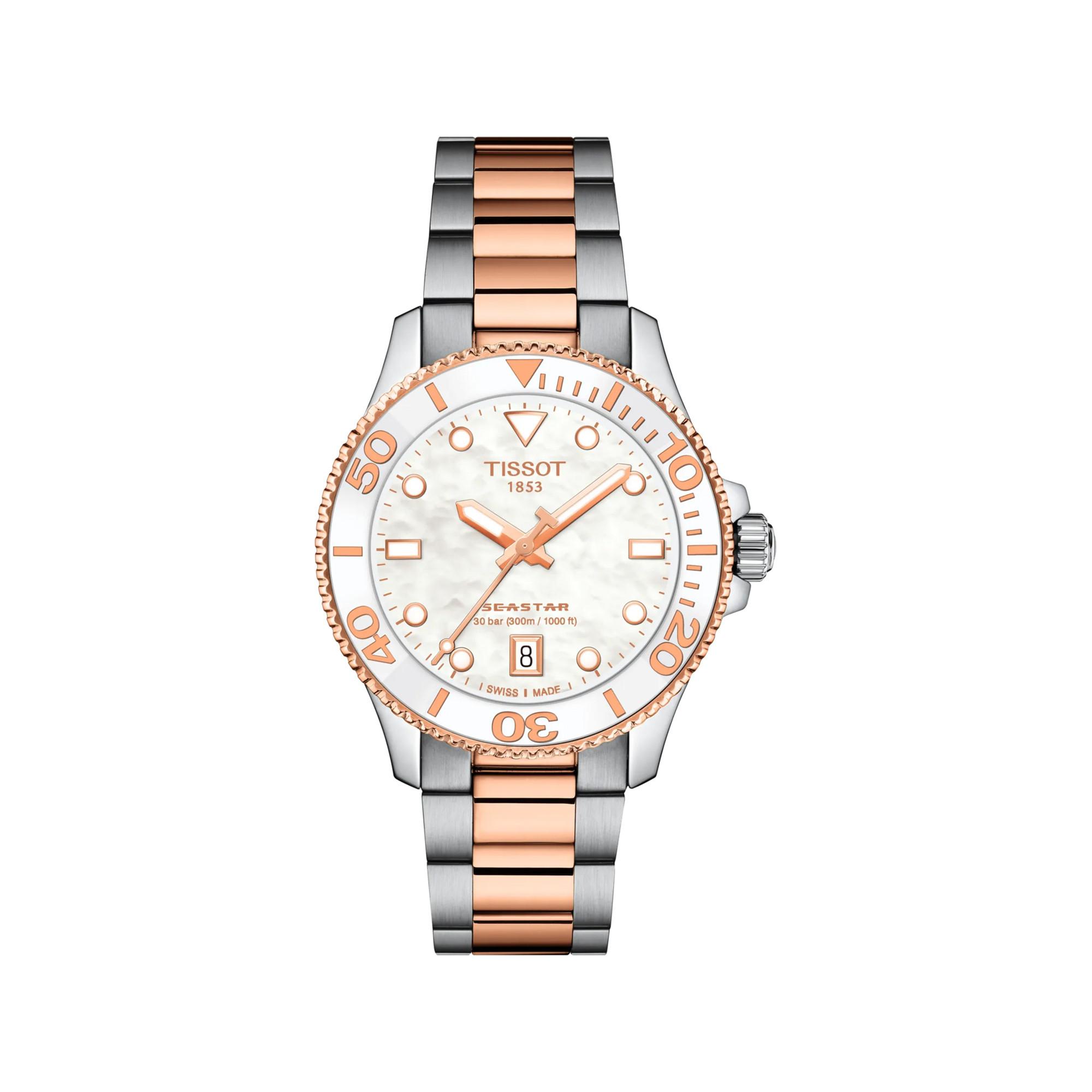 Diese stilvolle Uhr mit einem 36 mm Gehäuse aus roségoldbeschichtetem 316L-Edelstahl vereint Schweizer Quarzpräzision mit robuster Funktionalität – inklusive verschraubter Krone, kratzfestem, beidseitig entspiegeltem Saphirglas und einer Wasserdichtigkeit bis 30 bar. Das natürliche Perlmuttzifferblatt macht jedes Modell zu einem Unikat, während das Armband mit Schnellwechselsystem für maximalen Tragekomfort sorgt.