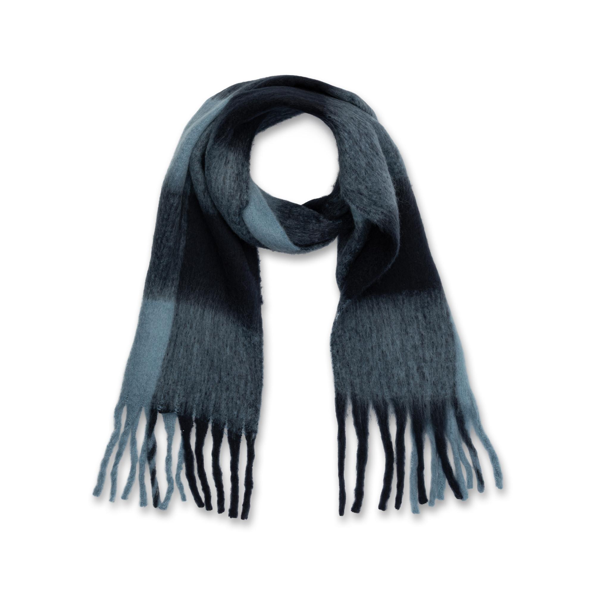 Dieser Schal mit XL-Karo-Muster und gedrehten Fransen ist besonders weich und griffig – ein unverzichtbares Accessoire an kühlen Tagen mit offensichtlichem Statement-Charakter.
