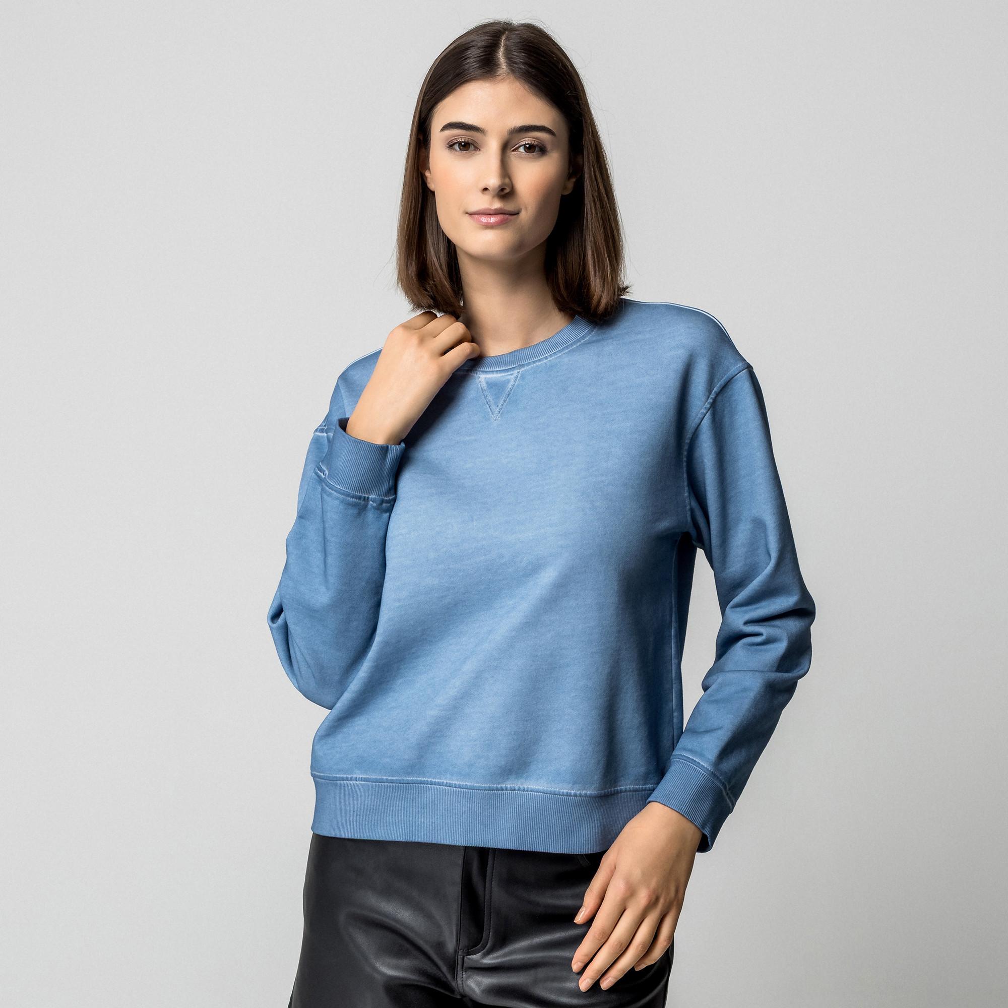 Dieses Sweatshirt aus French Terry aus reiner Baumwolle ist mit entspanntem Regular-Schnitt und geripptem Saumabschluss ein augenfälliges Basic mit hohem Tragekomfort. Das Shirt hat einen Rundhalsausschnitt und lange Ärmel.