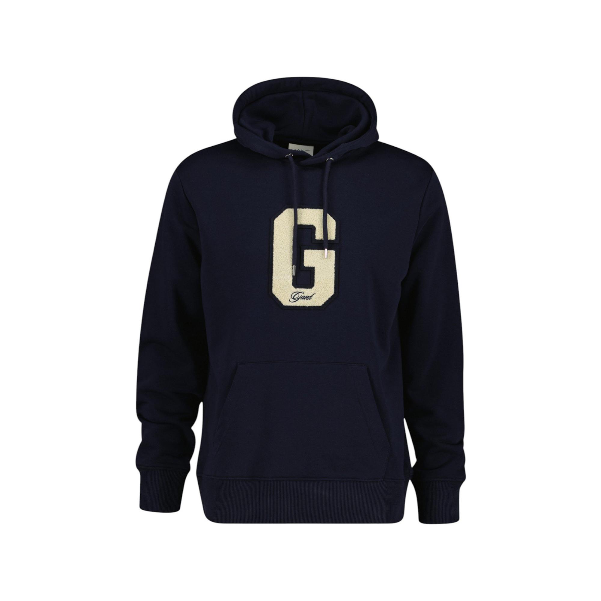 Dieses GANT Sweatshirt kombiniert sportlichen Komfort mit einem klassischen Collegelook. Der G-Badge auf der Brust verleiht dem Design eine markante Note, während Kapuze, Kängurutasche und gerippte Abschlüsse für Funktionalität sorgen. Die weiche Baumwollmischung mit recyceltem Polyester macht es zum idealen Begleiter für entspannte Alltagsmomente.