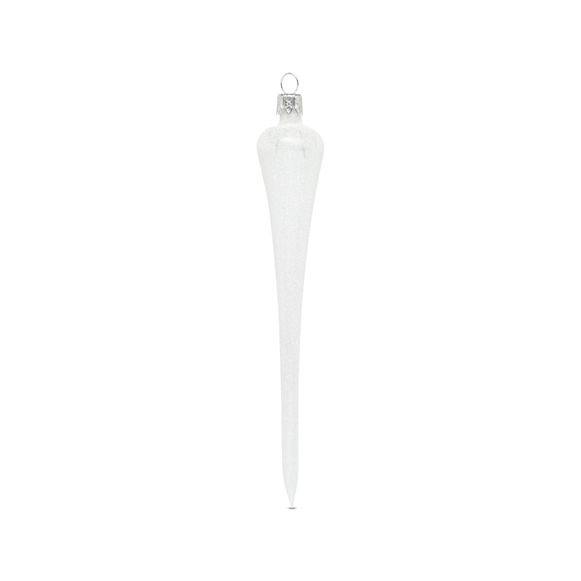 Dieser gläserne Eis-Zapfen von Manor ist als edle Geschenk-Dekoration und Christbaumschmuck ein wunderbares, zartes Accessoire.