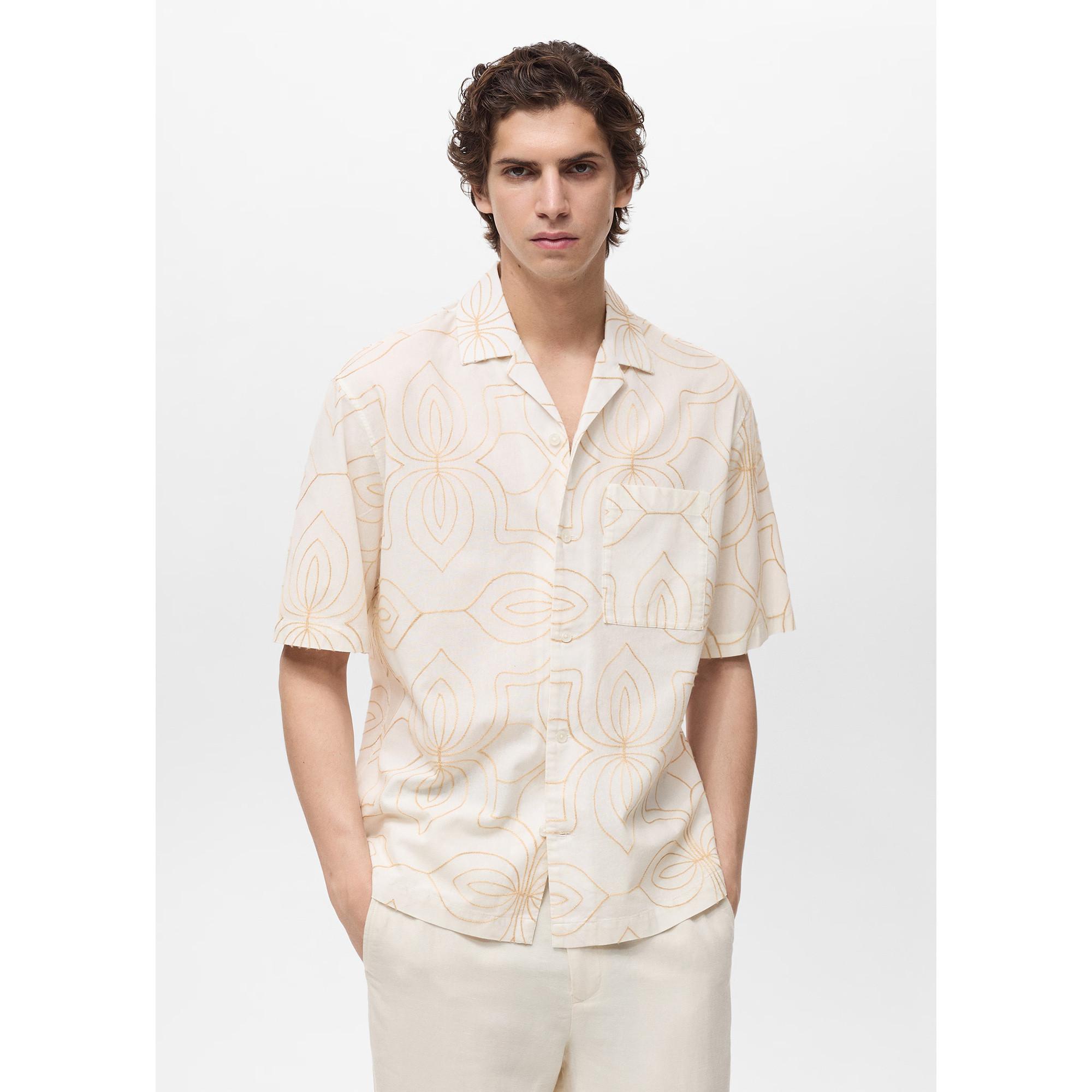 Das Hemd zeigt sich im Regular Fit mit durchgehender Knopfleiste und klassischem Bowlingkragen. Kurze Ärmel, eine aufgesetzte Brusttasche und kleine seitliche Schlitze sorgen für eine entspannte Passform. Dezente Stickereien verleihen dem Look eine besondere Note.