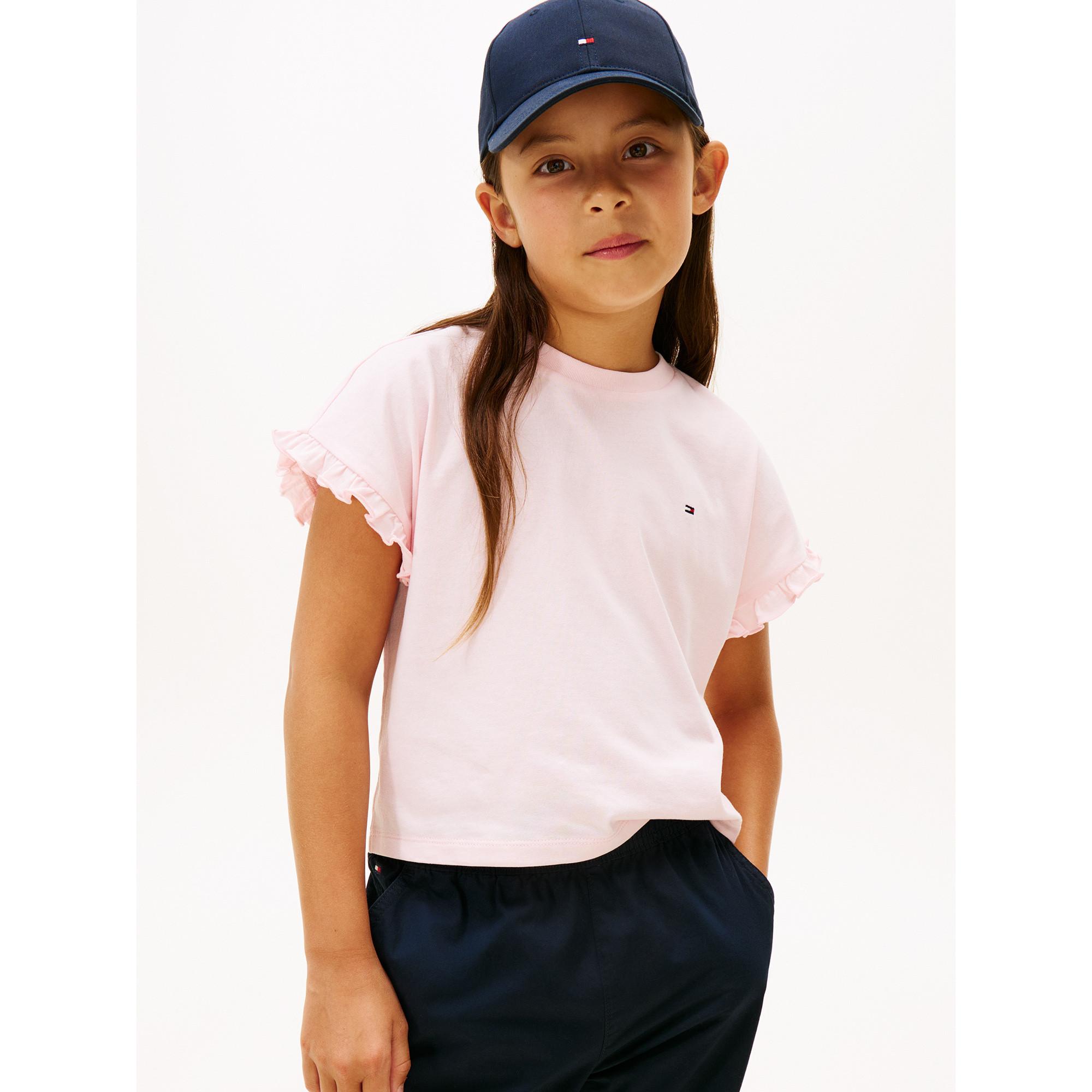 T-Shirt von Tommy Hilfiger mit gerüschten Ärmeln. Das klassische Design wird durch die besondere Ärmelgestaltung modern interpretiert und sorgt für einen stilvollen Look.