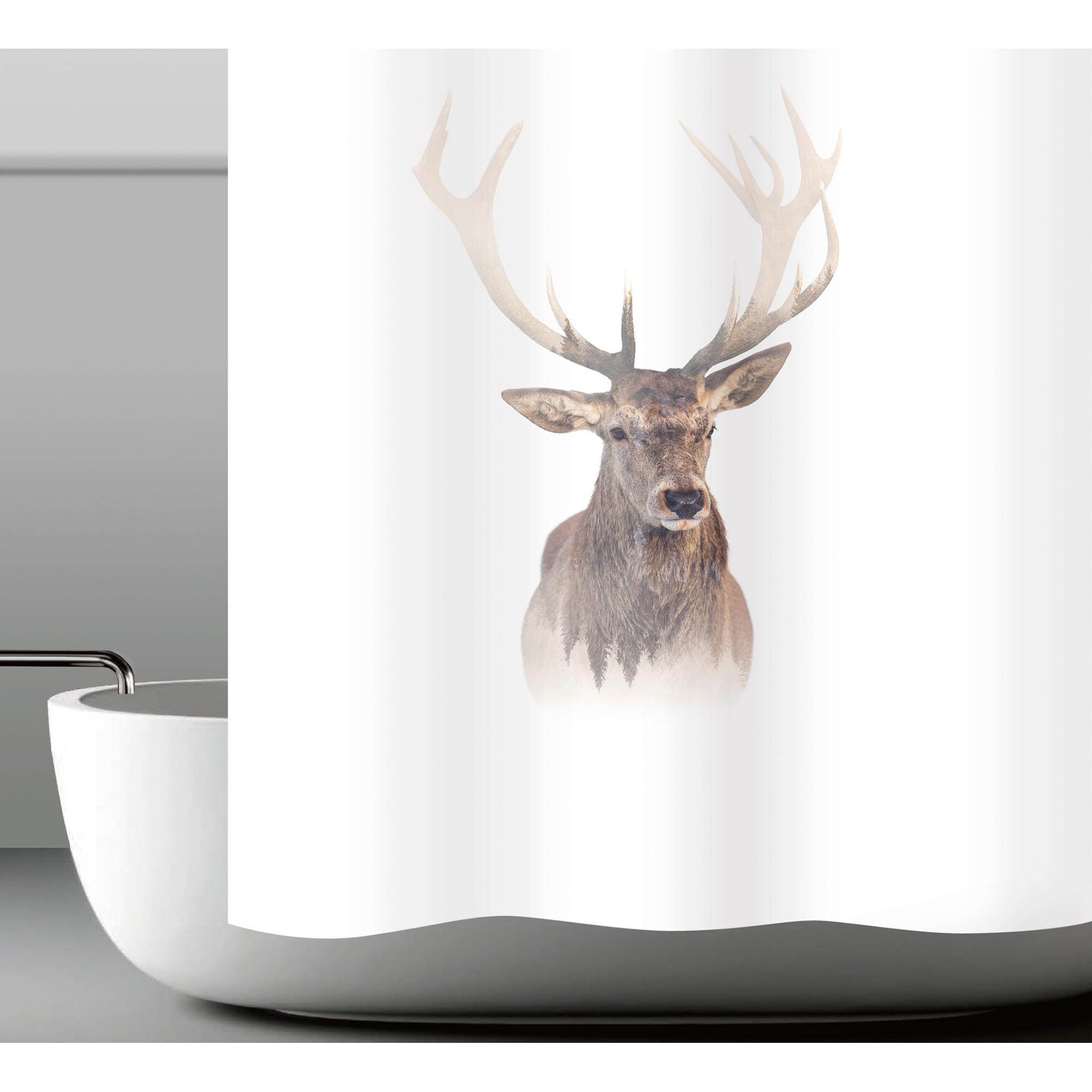 Verleihen Sie Ihrem Badezimmer einen Hauch von Natur: Der Duschvorhang mit majestätischem Reh-Motiv bringt rustikalen Charme in Ihre Wohlfühloase.