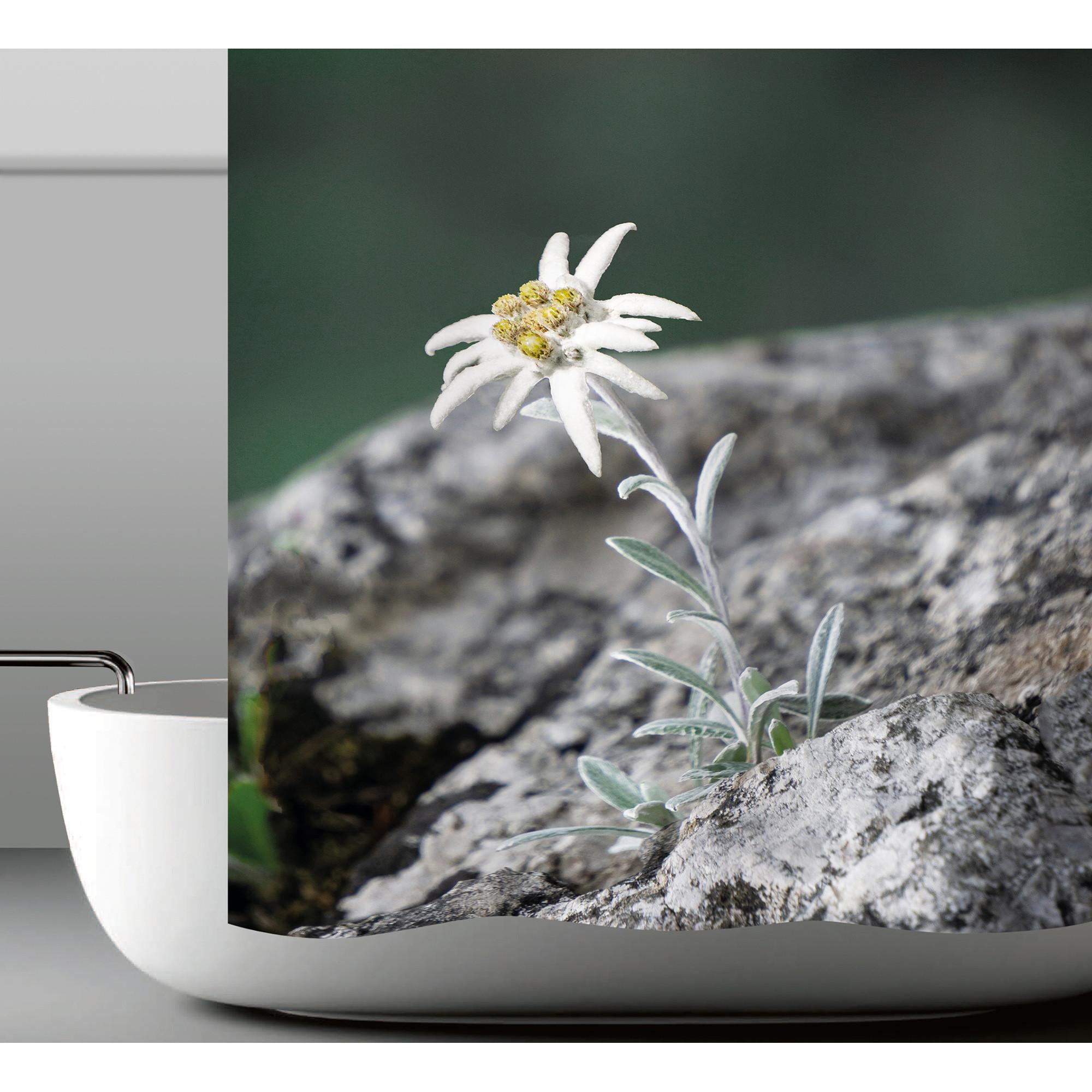 Ein Hauch Alpenromantik fürs Badezimmer: Der Duschvorhang mit zartem Edelweiss-Motiv bringt alpine Frische in Ihr Zuhause.