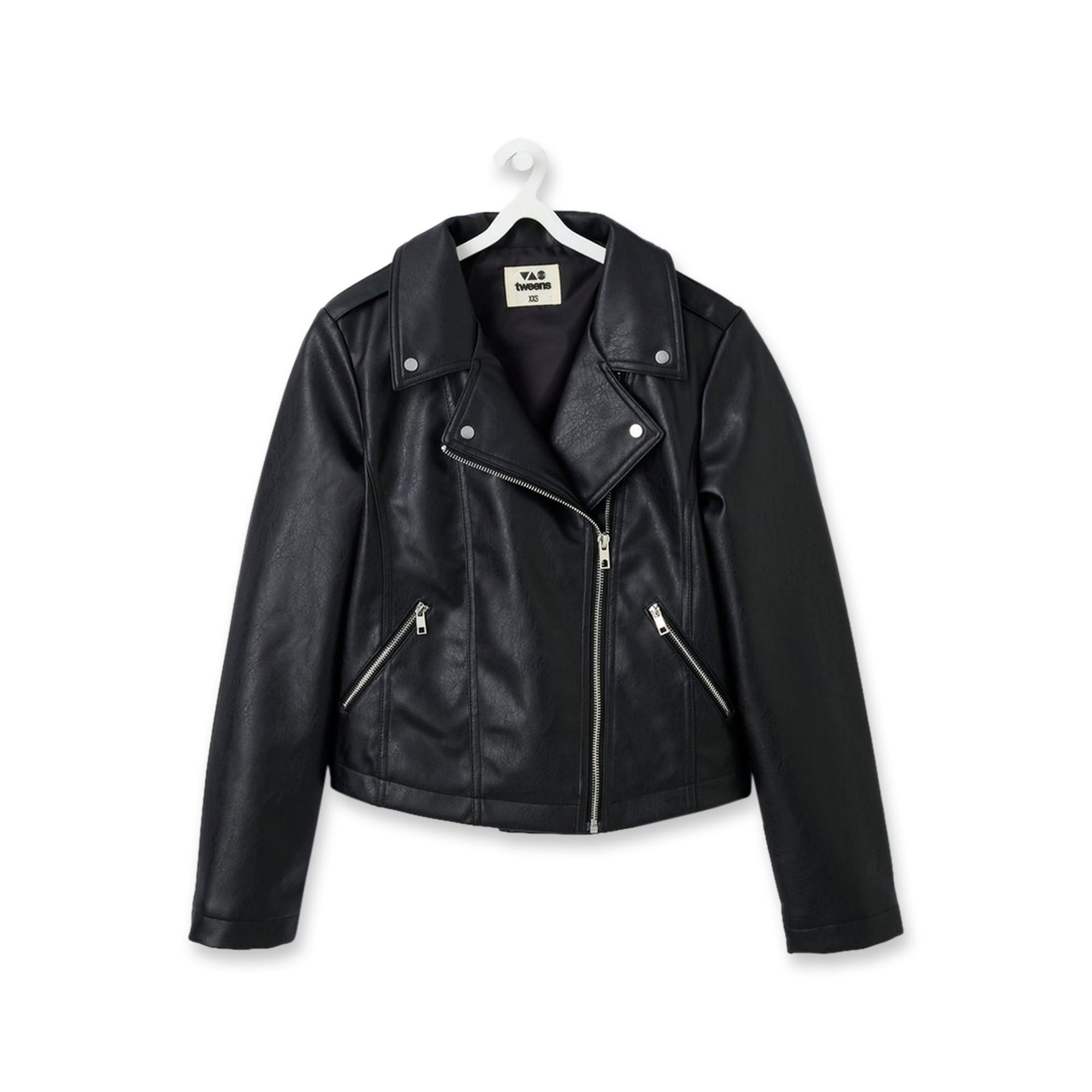 Diese schwarze Kunstlederjacke für Mädchen bringt rockigen Chic in jedes Outfit und setzt ein modisches Statement. Mit ihrer taillierten Passform, dem praktischen Reissverschluss und trendigen Druckknopfdetails verbindet sie Komfort und Coolness zugleich.