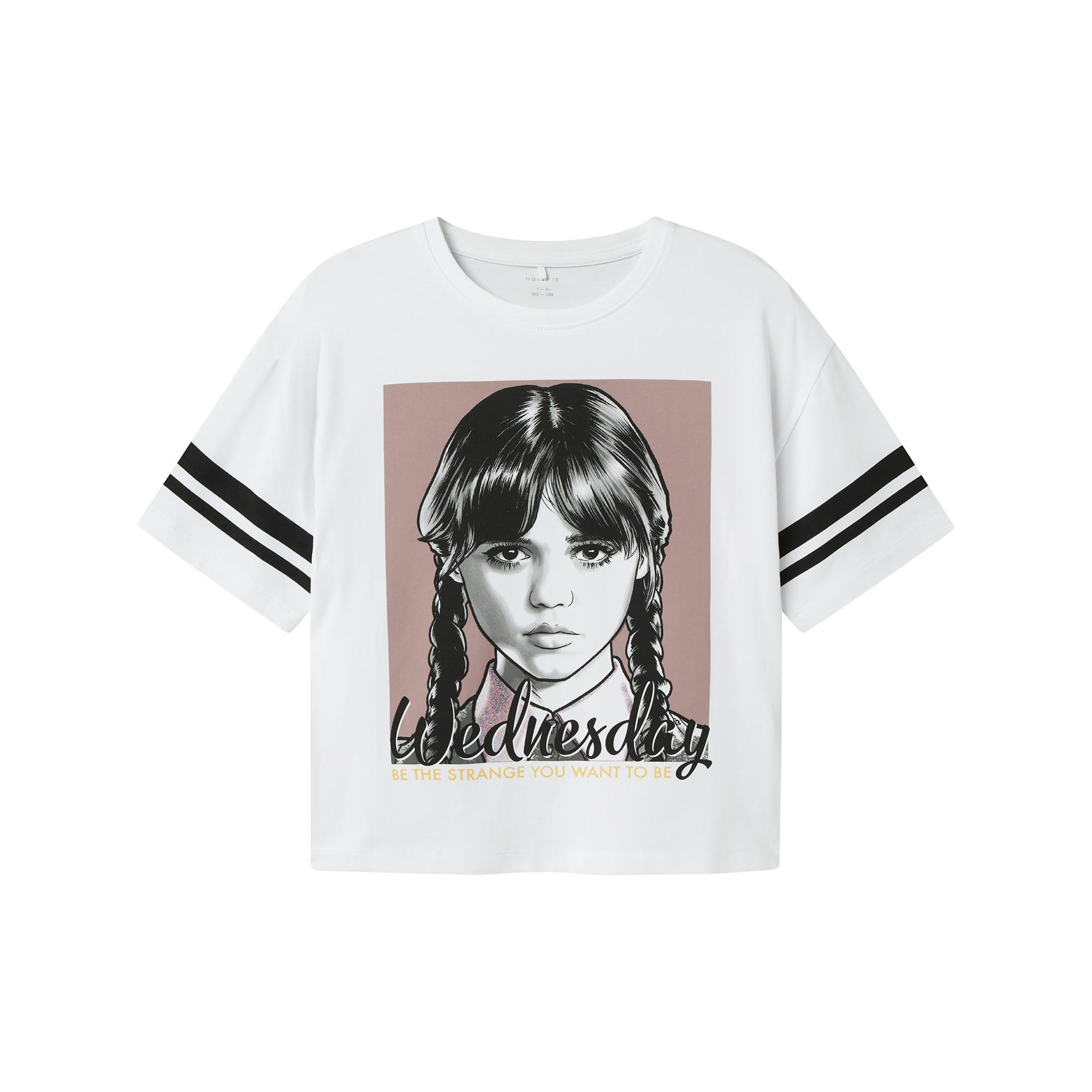 Das T-Shirt von Name It begeistert mit einem coolen Wednesday-Print und ist aus weichem, elastischem Jersey für hohen Tragekomfort gefertigt. Perfekt für Alltag und Freizeit bietet es dank des lockeren Schnitts und kurzen Ärmeln viel Bewegungsfreiheit.